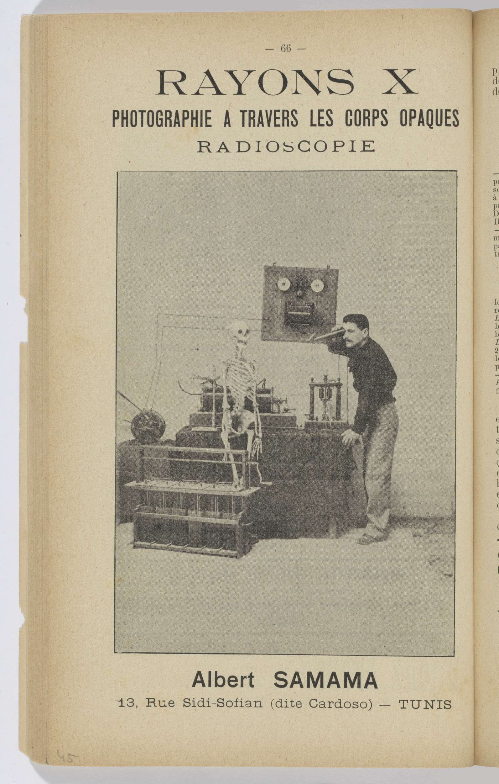 Albert Samama bekijkt een skelet met een röntgentoestel