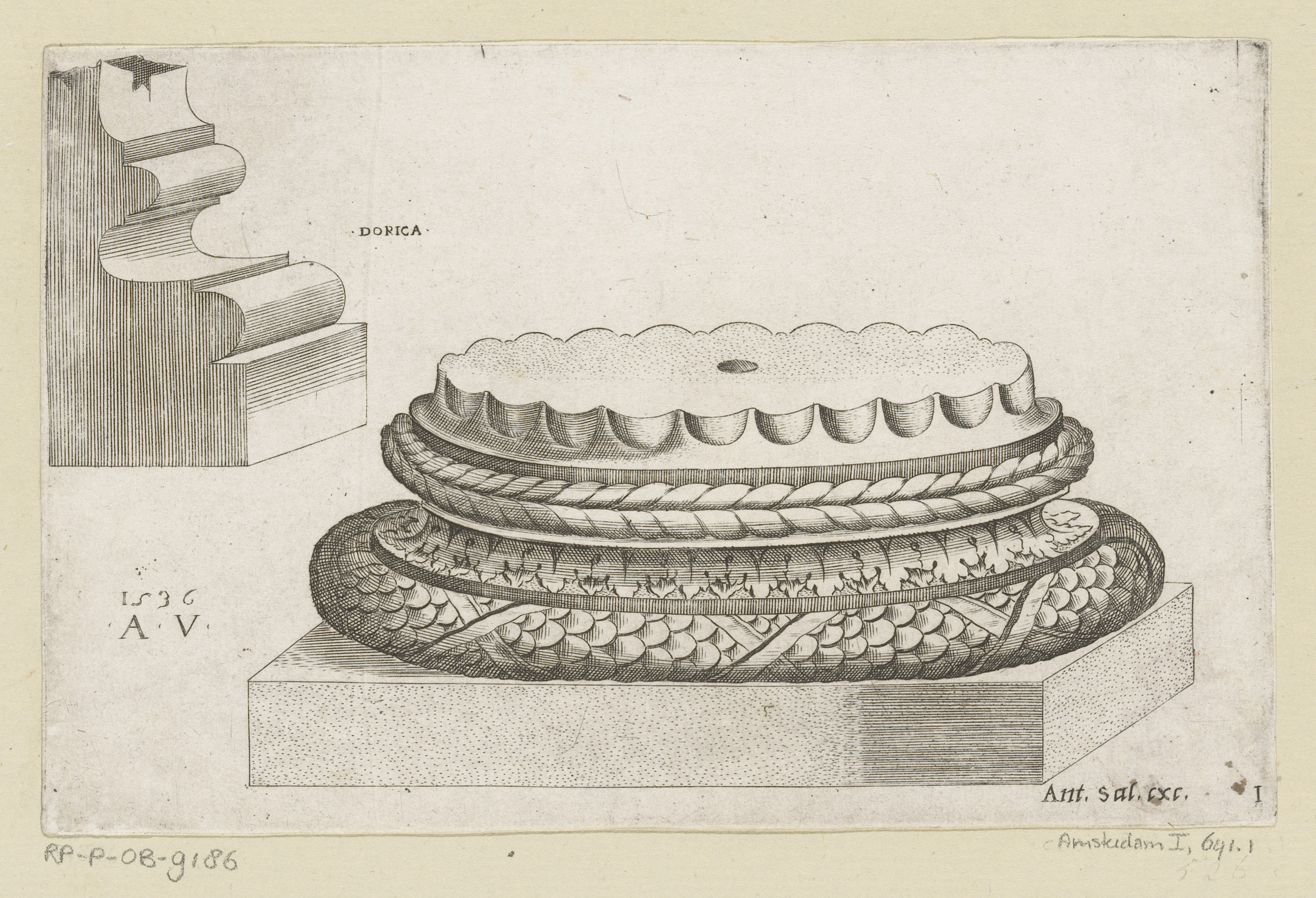 Ornamenteel kapiteel en basement van zuil