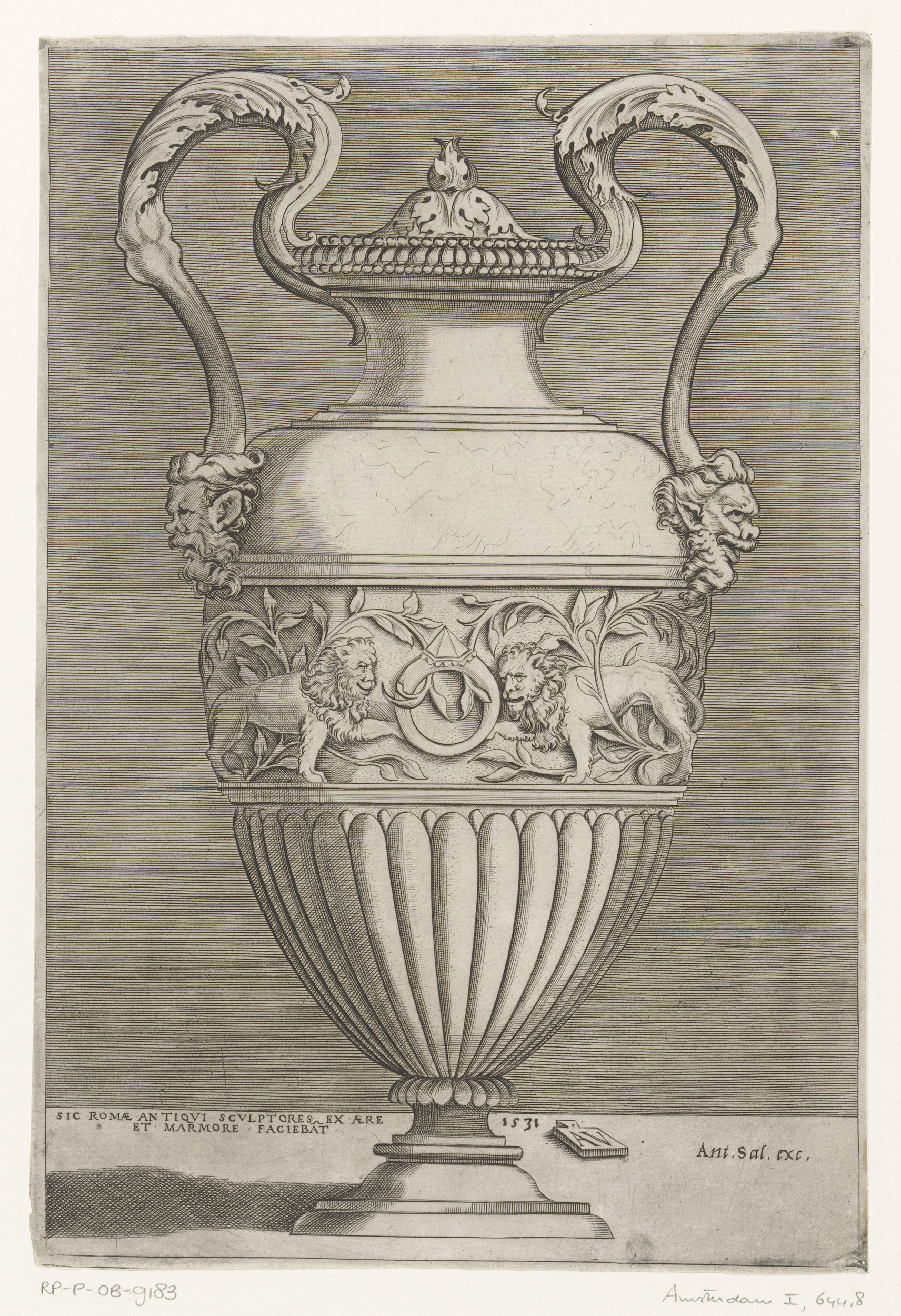 Ornamentele vaas met twee leeuwenkoppen