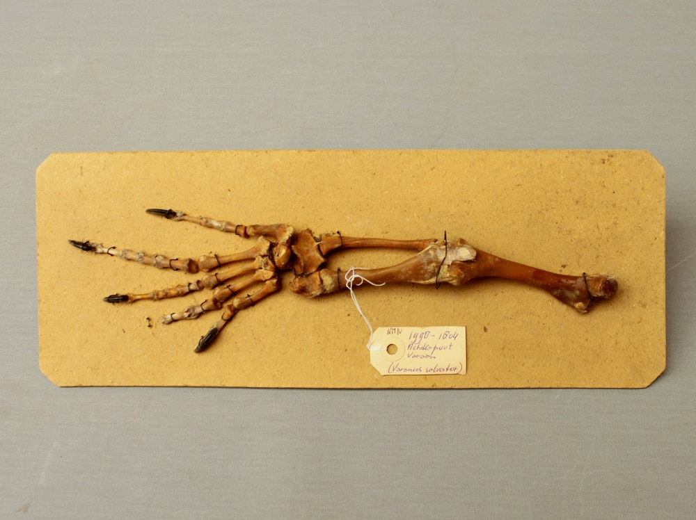 Watervaraan; skelet achterpoot; op strokarton