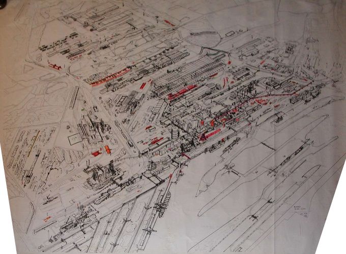 Tekening overzicht fabrieksterrein Hoogovens