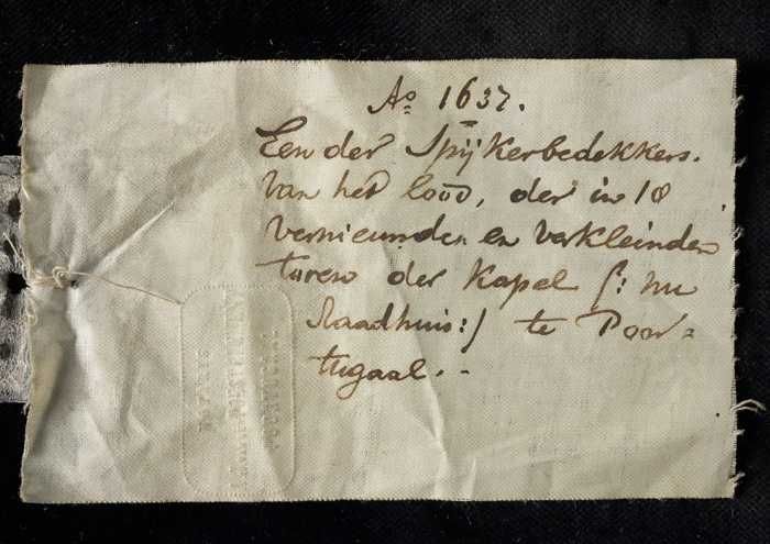 Dakloodje, schildvormig afdekplaatje met "1637", ini...