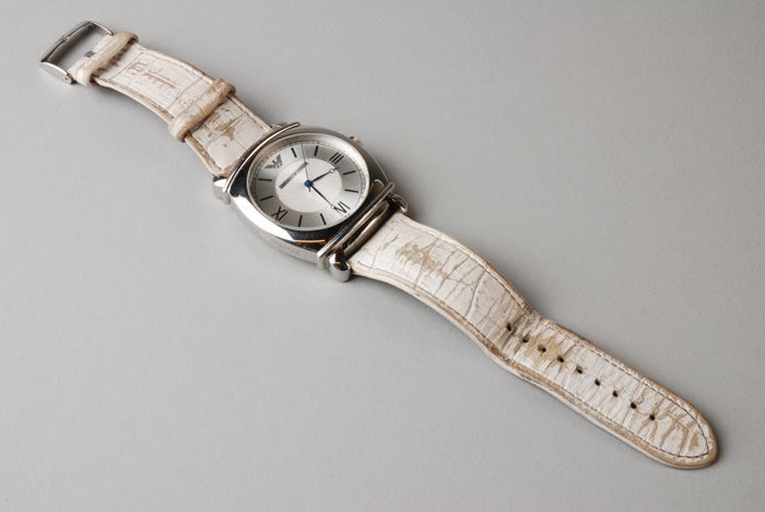 Wit horloge, merk Emporio Armani, bandje van echt leer