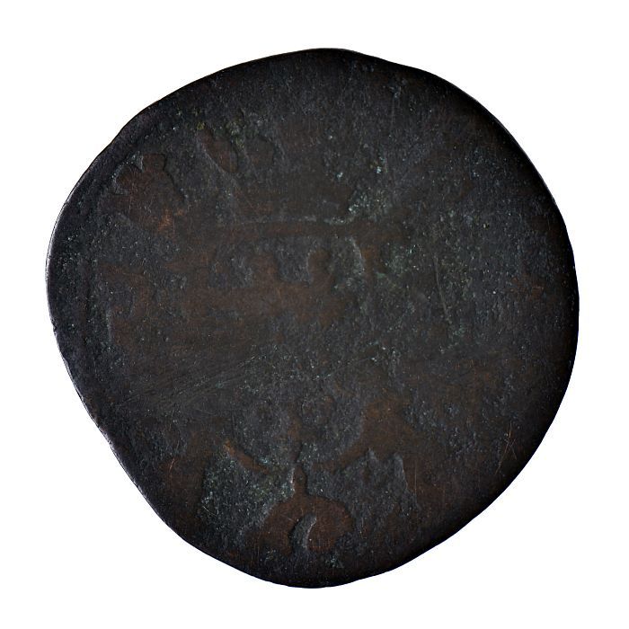 Koperen noodmunt, halve stuiver, Leiden, 1574