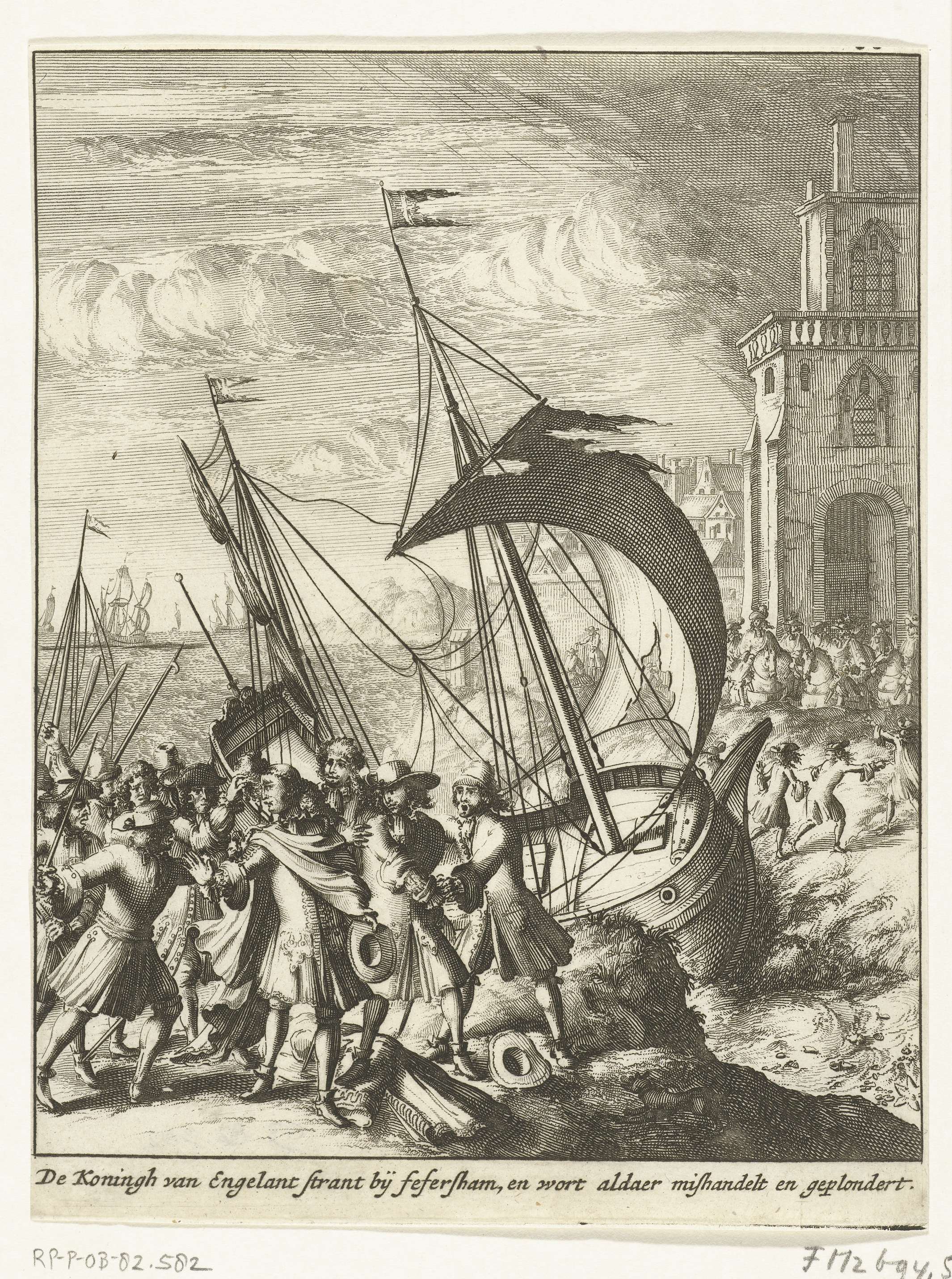 De vluchtende koning Jacobus II wordt in Faversham g...