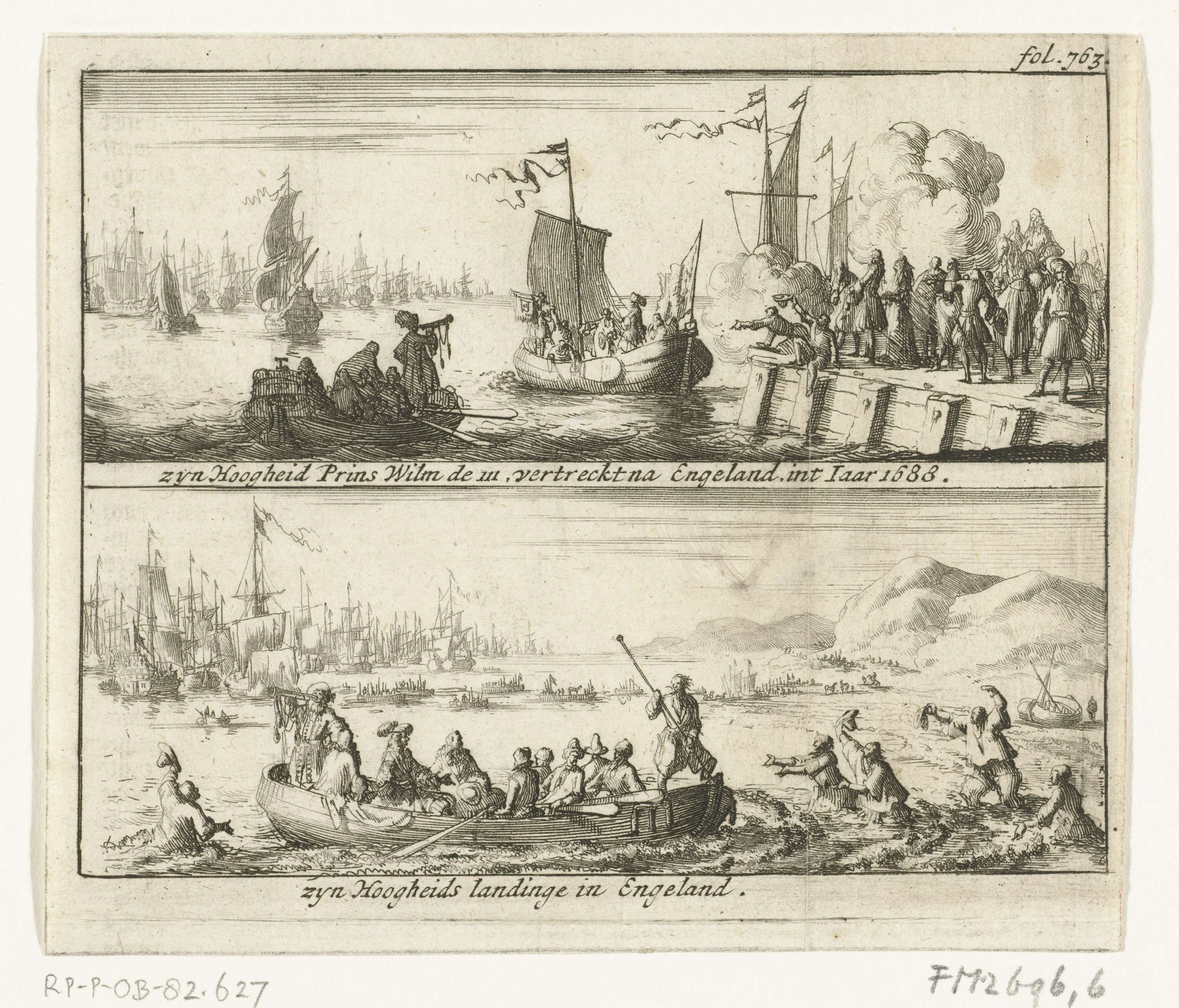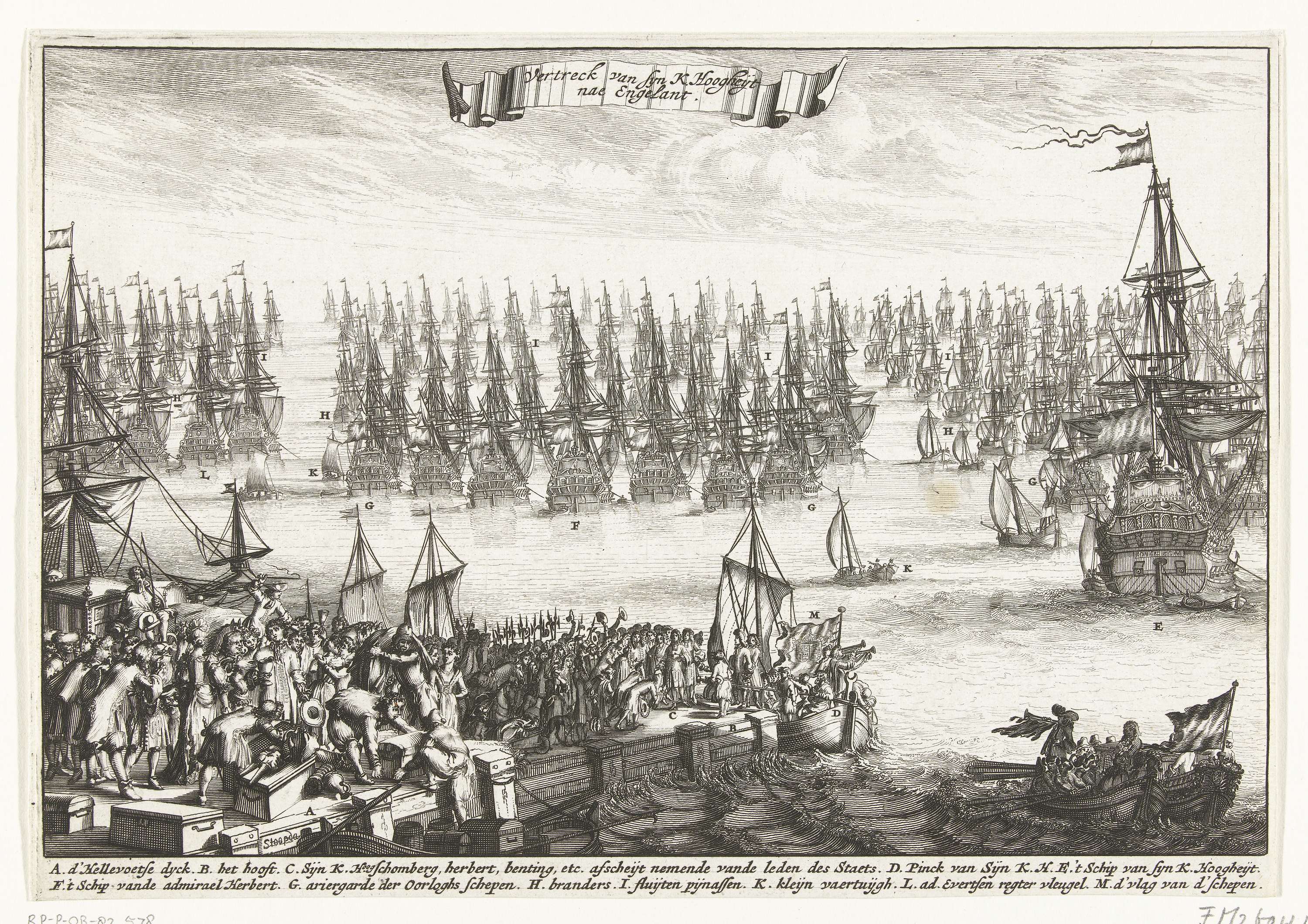 Vertrek van Willem III naar Engeland en aankomst ald...
