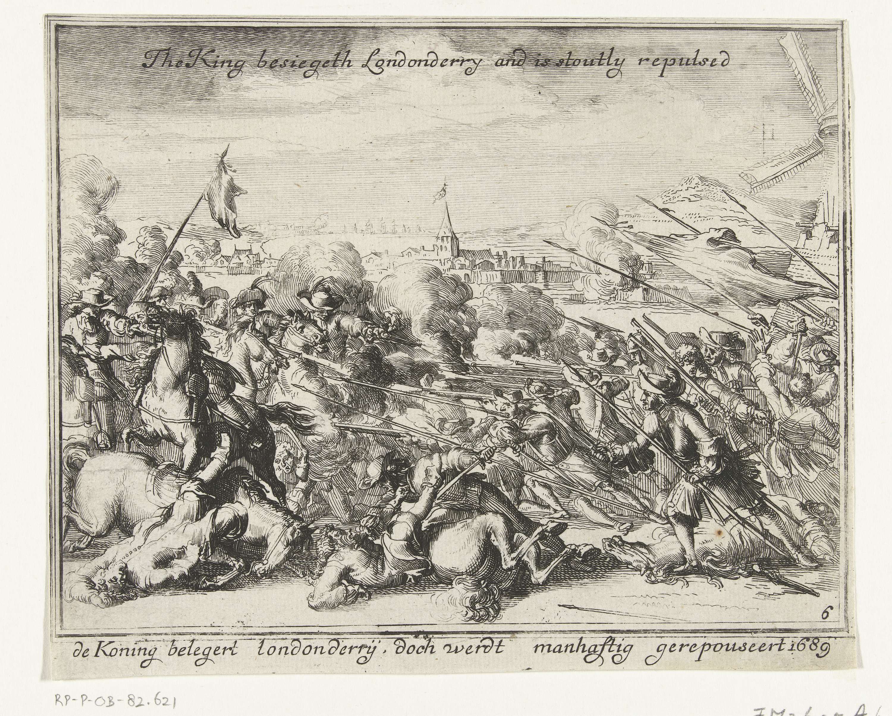 Koning Jacobus II belegert Londonderry maar wordt af...
