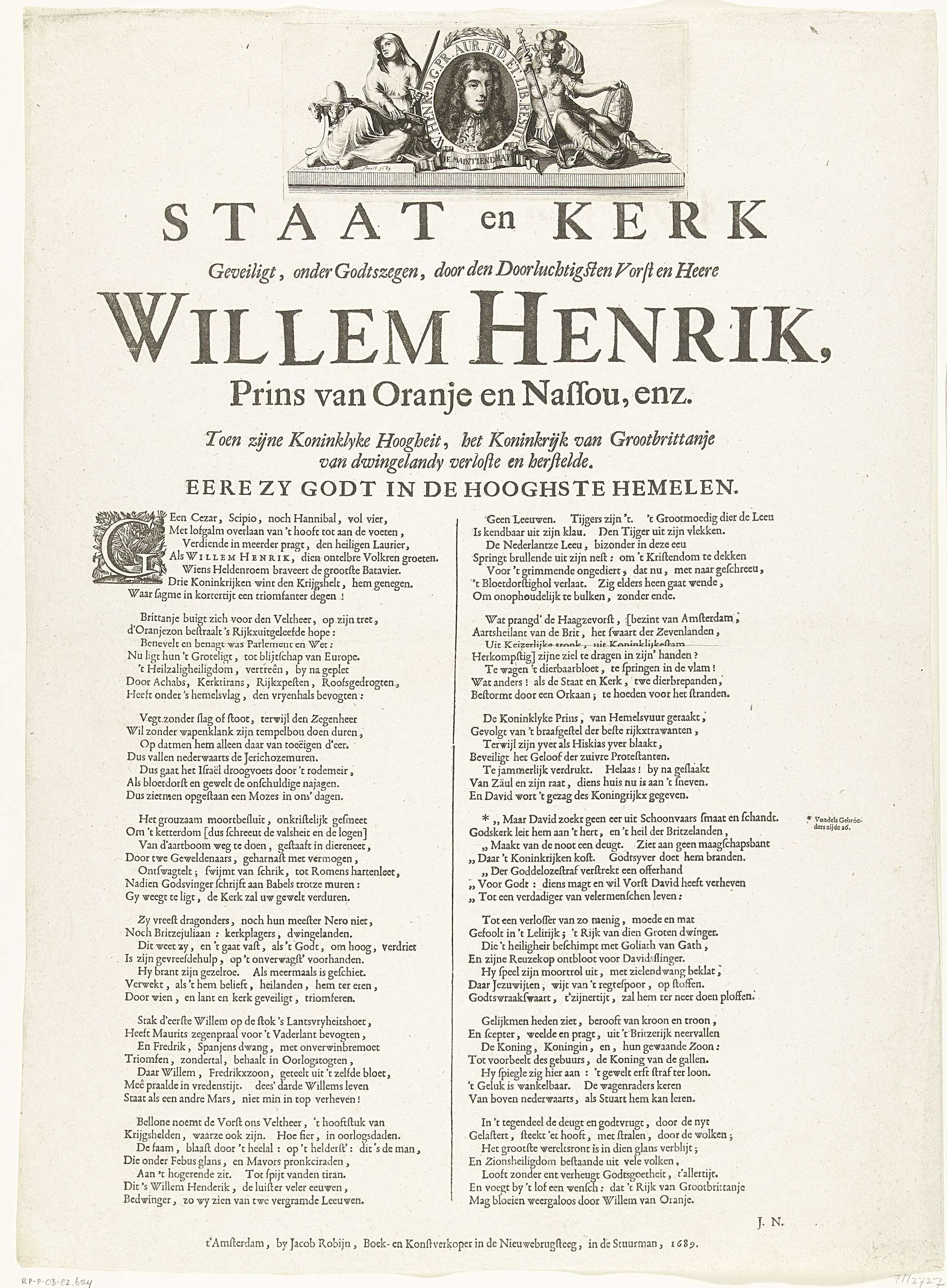 Lofdicht op het herstel van staat en kerk in Engelan...