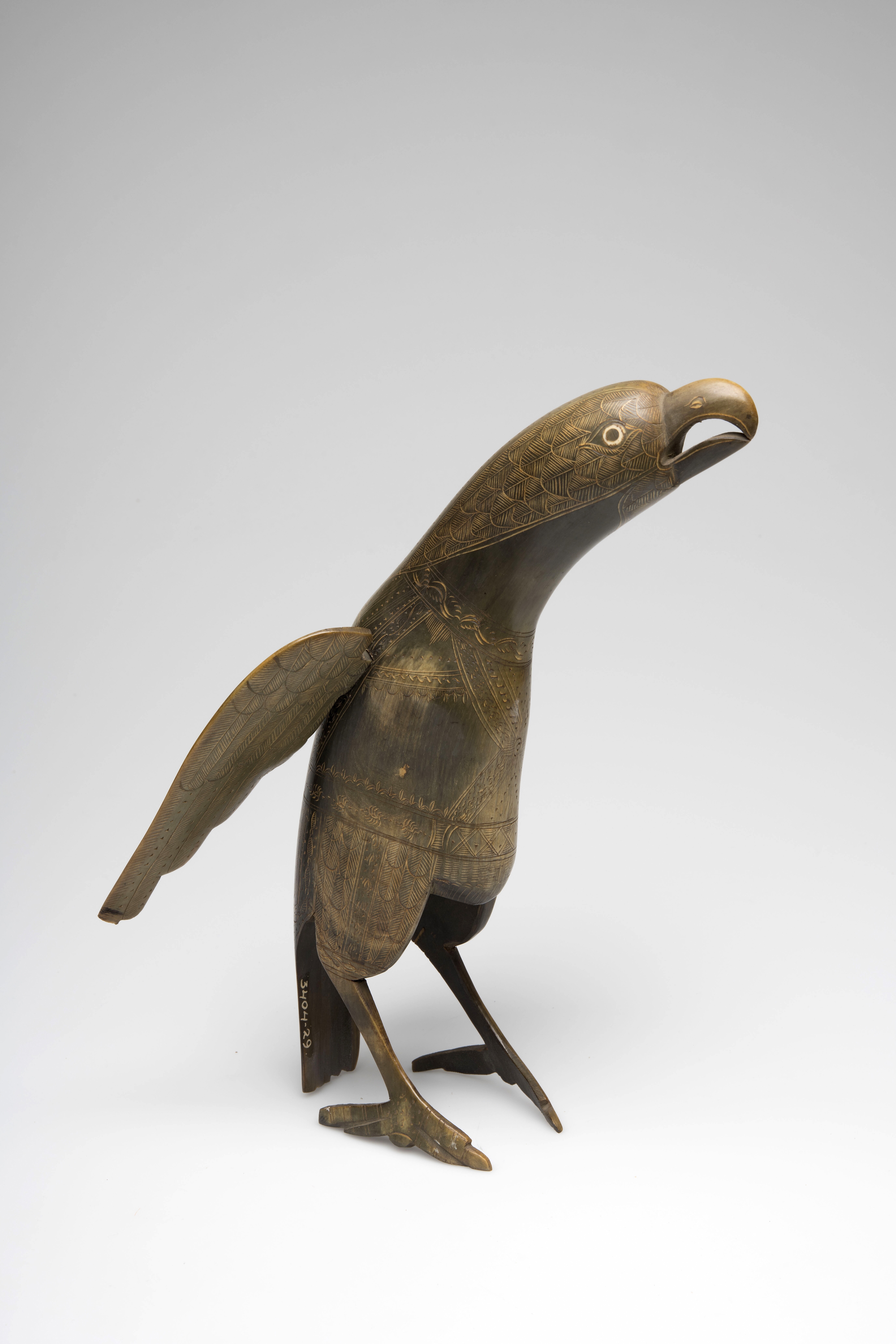 Karbouwenhoorn bewerkt in de vorm van een papagaai