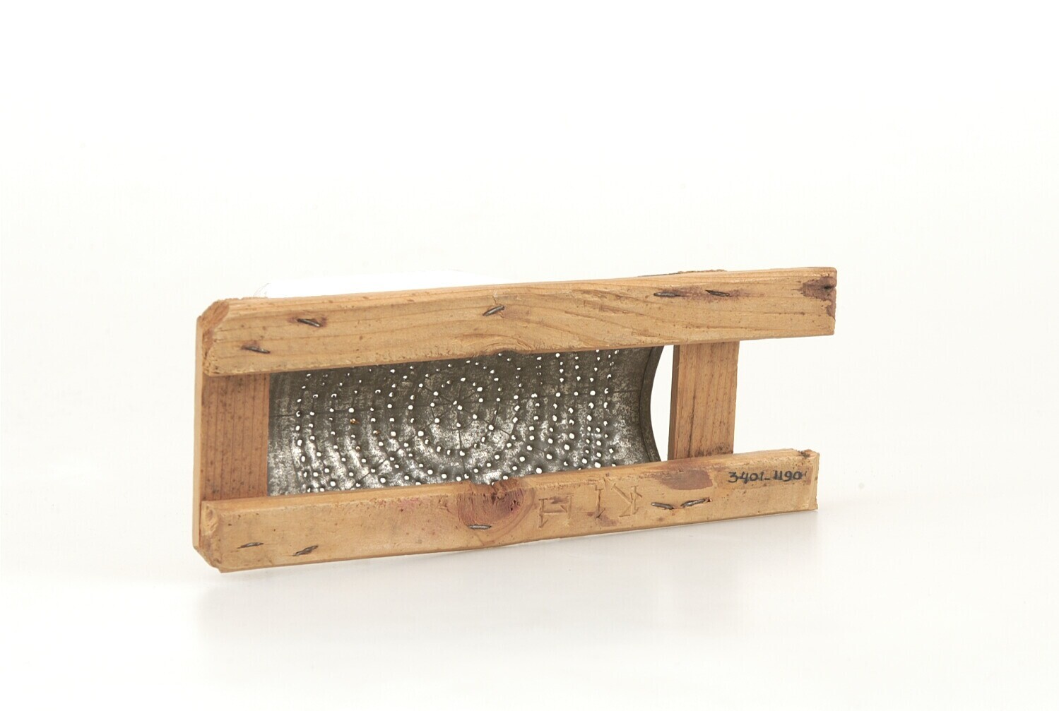 Rasp van hout en blik, vermoedelijk gebruikt voor he...