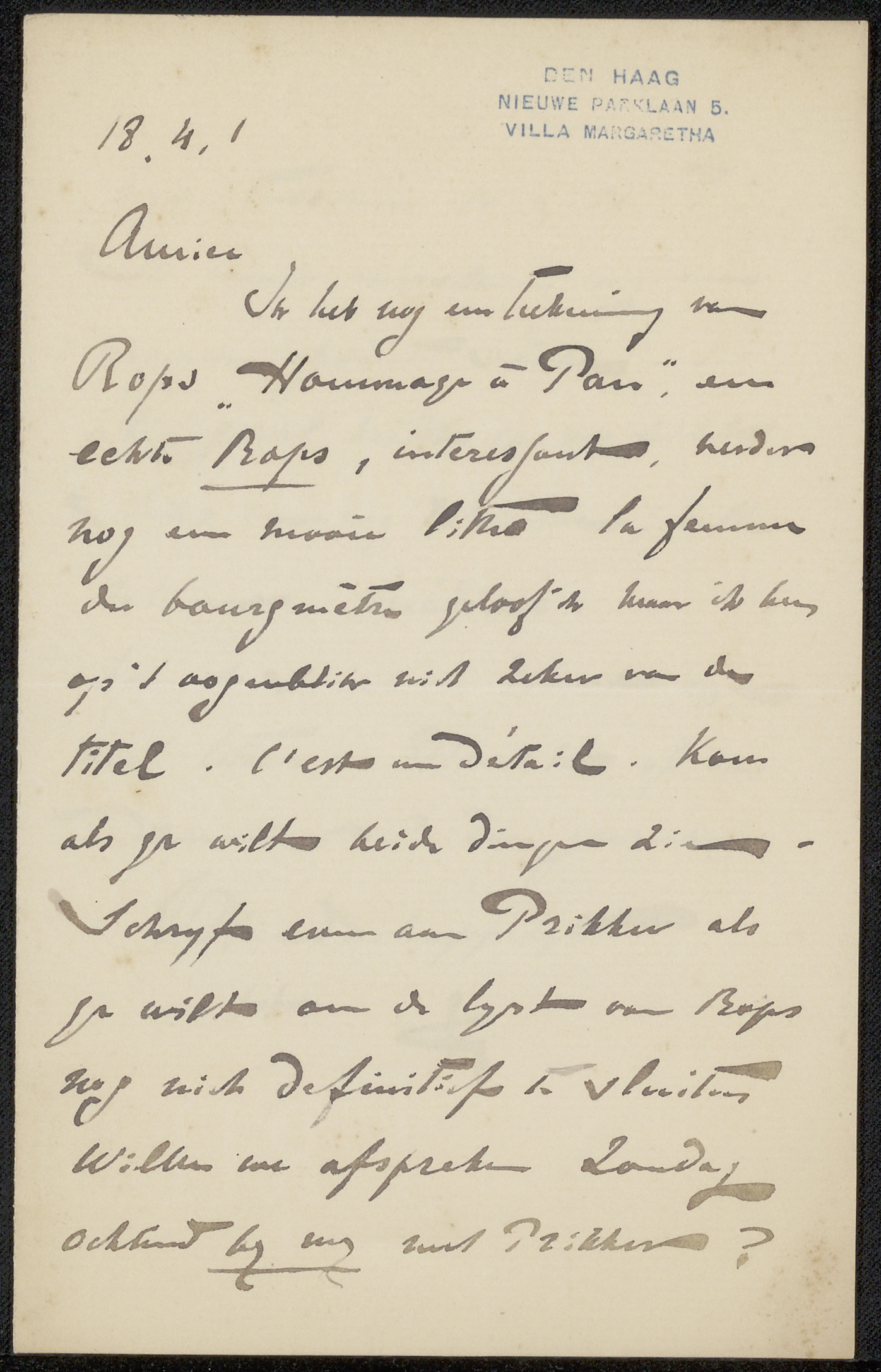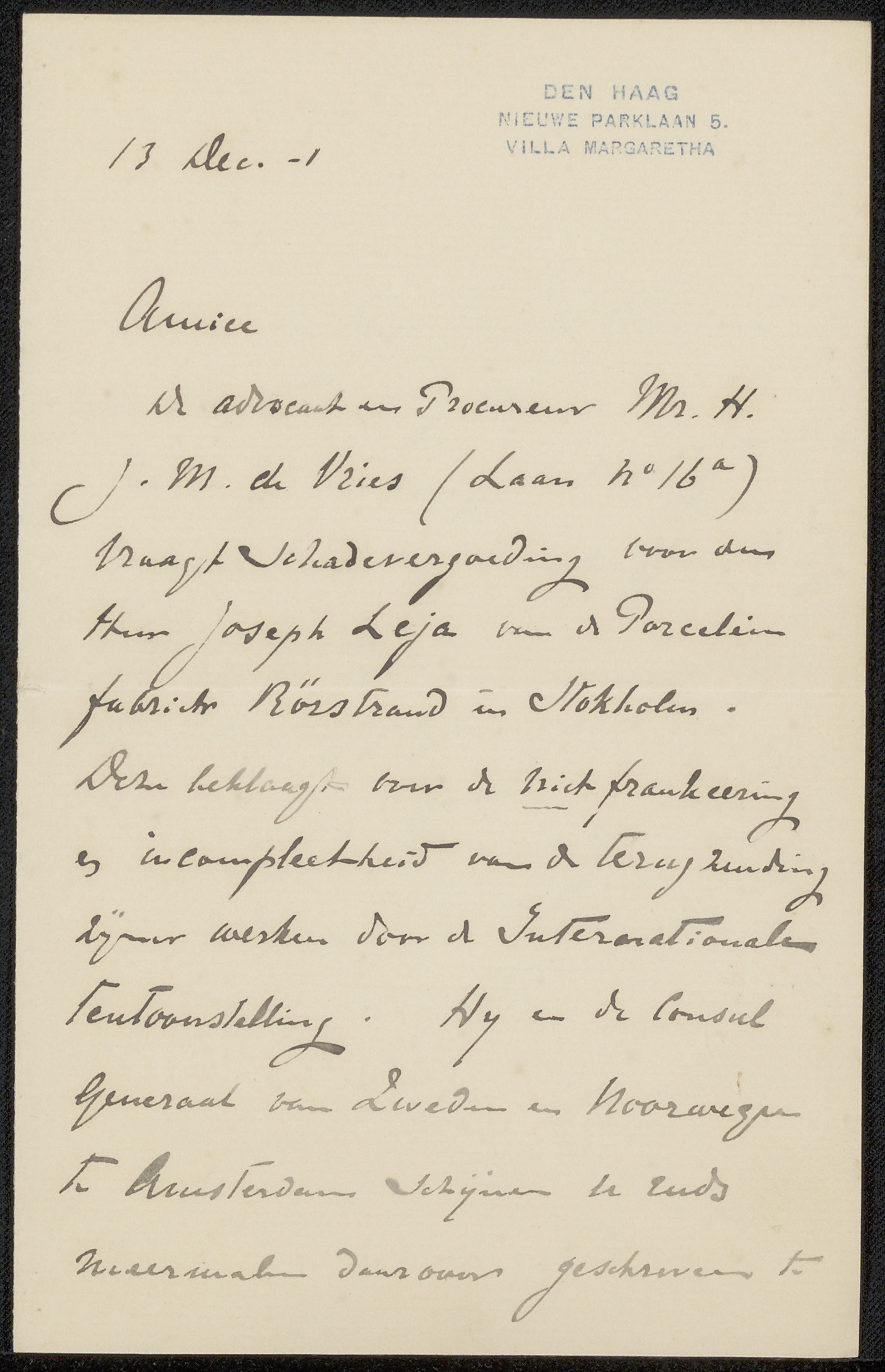 Brief aan Philip Zilcken