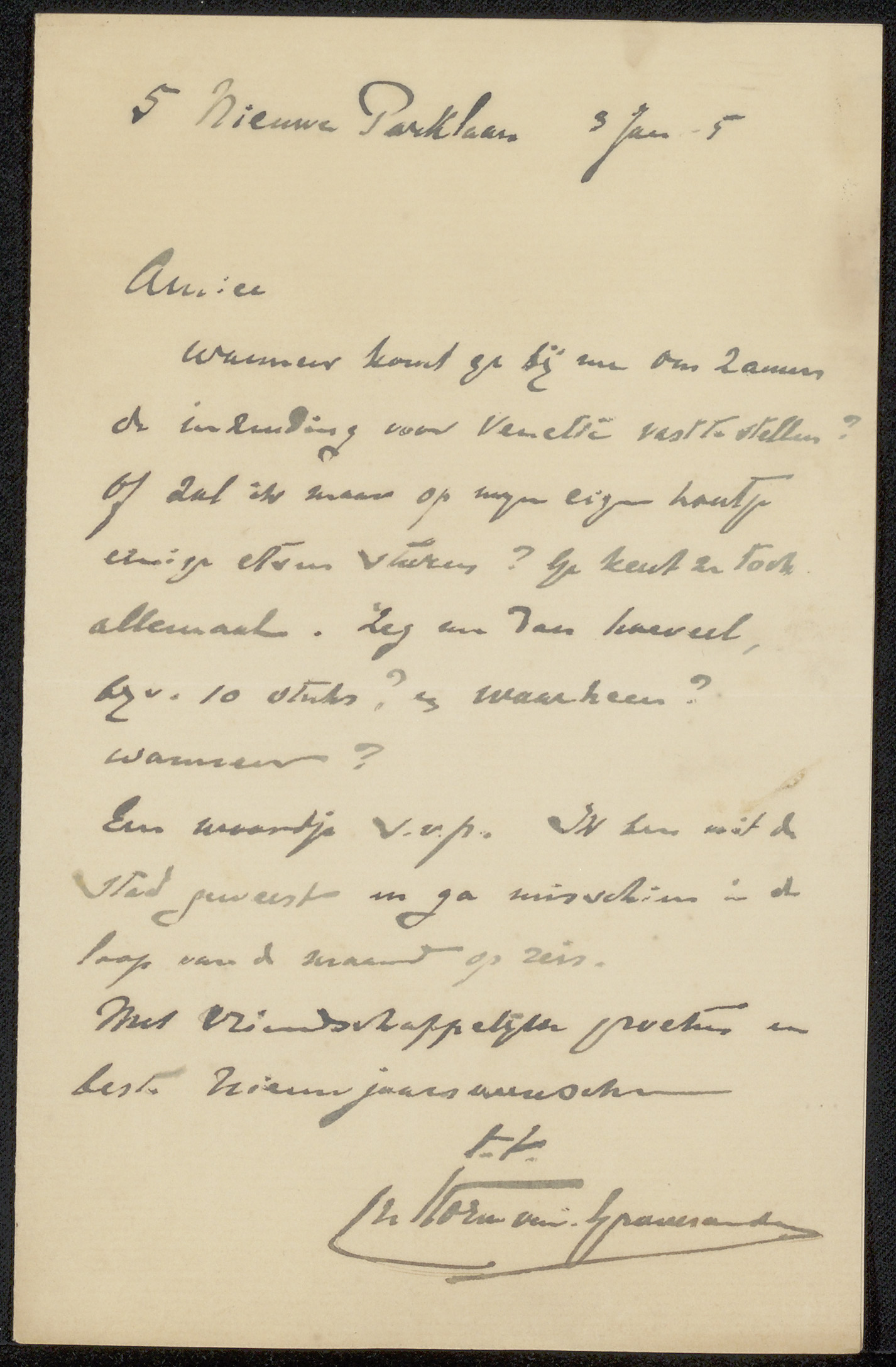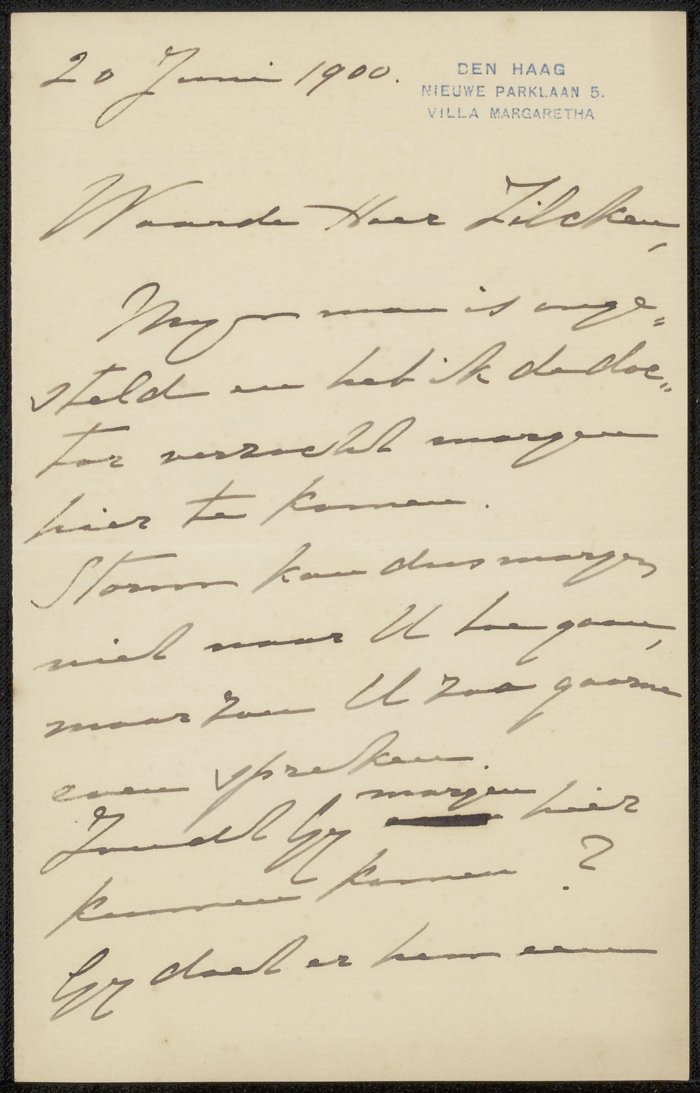 Brief aan Philip Zilcken en Henriette Wilhelmina van...