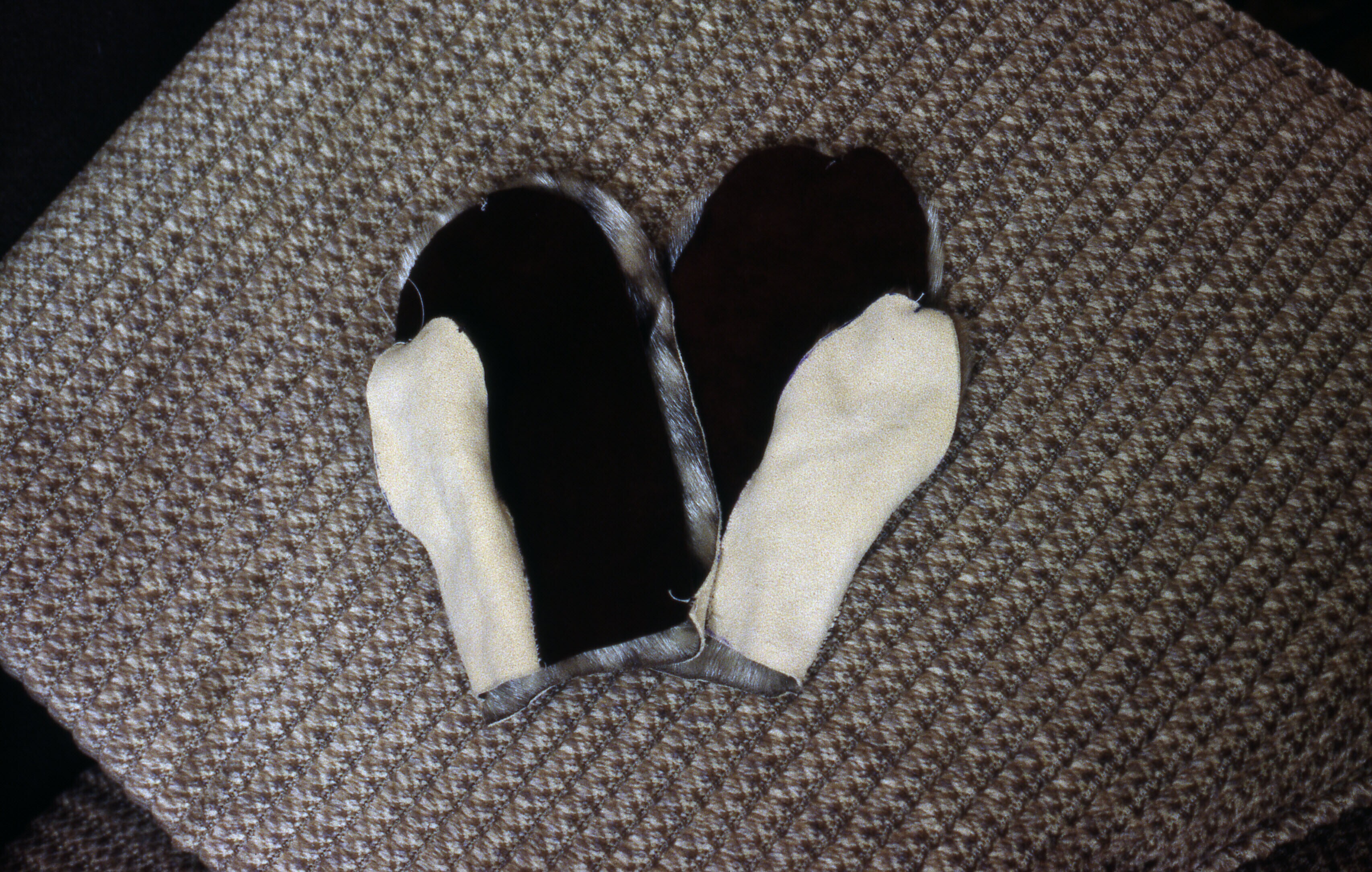 De wanten van gelooid zeehondenbont en kunstleer, di...