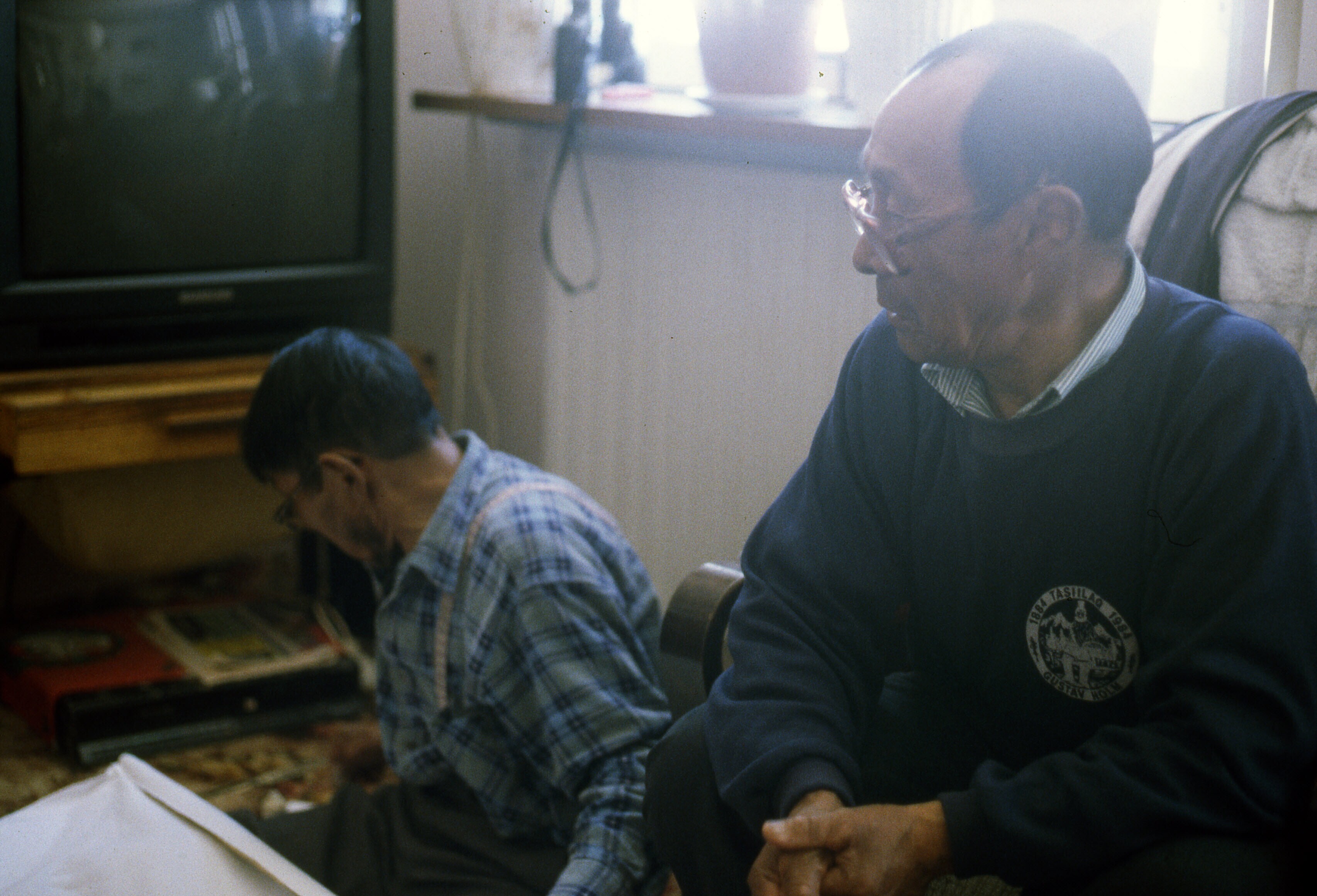 Mediasse en Lars Jonathansen in zijn huis in Tiniteq...