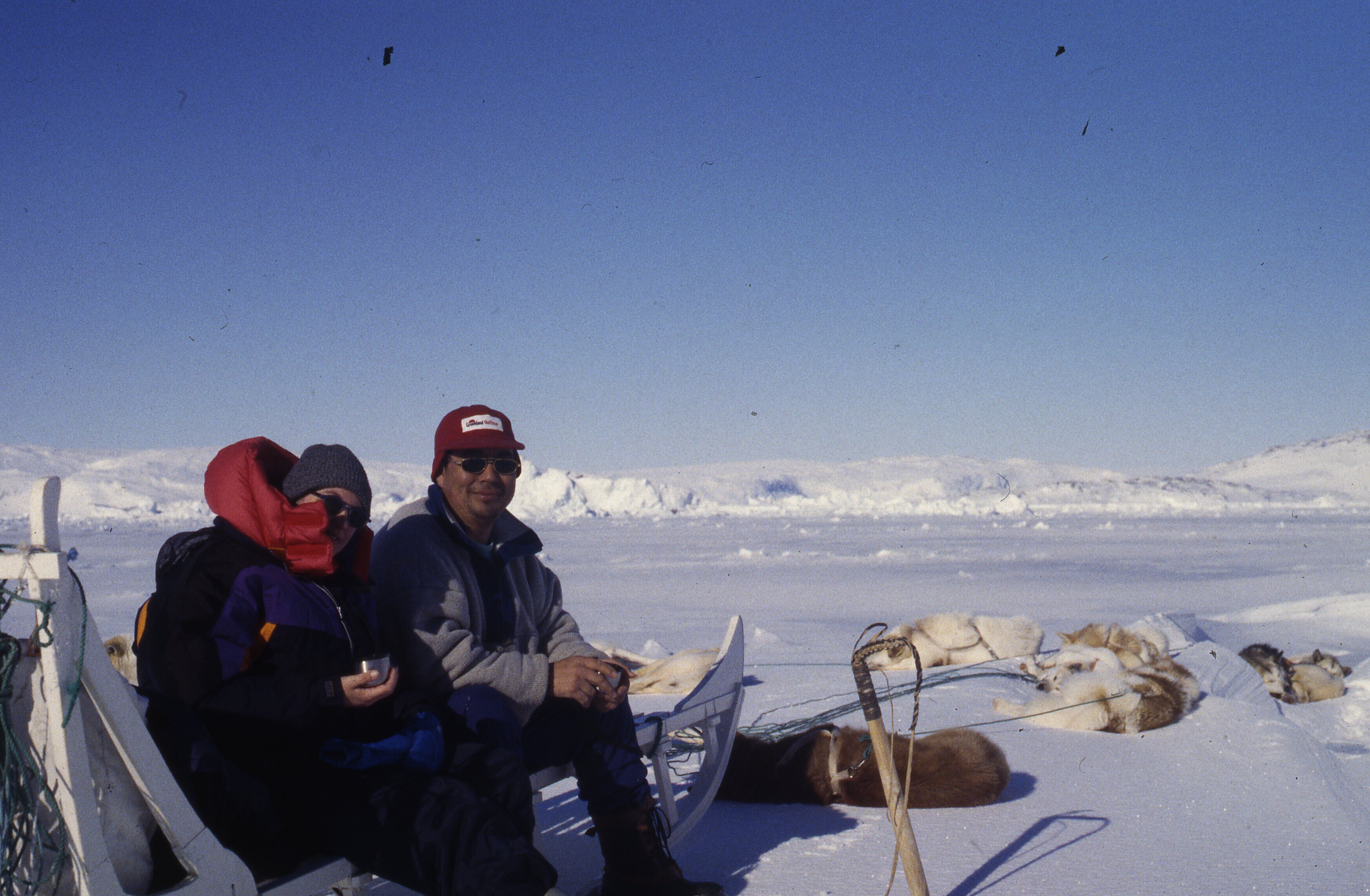 Op het fjord-ijs aan de voet van Tiniteqilaaq maken ...