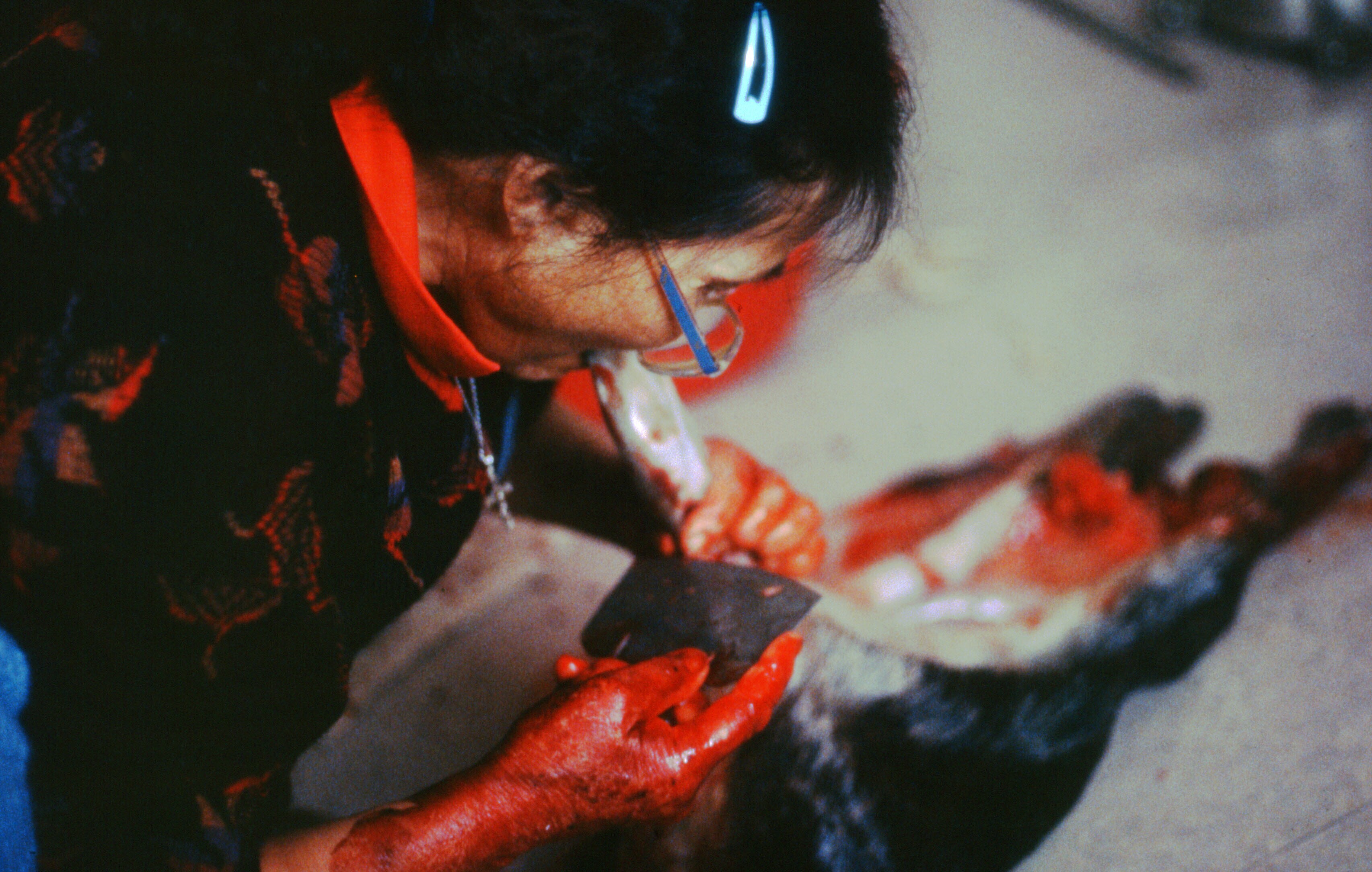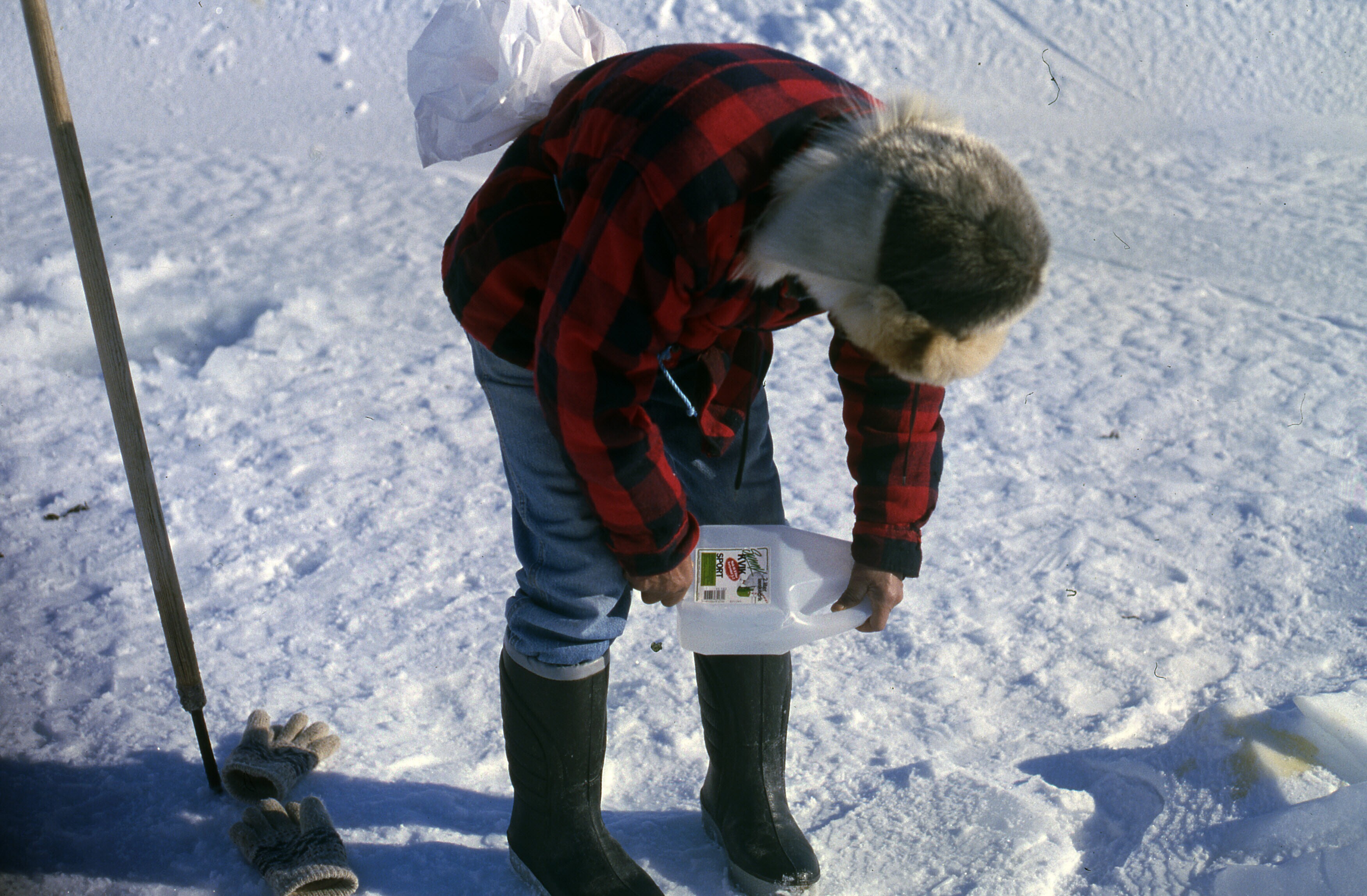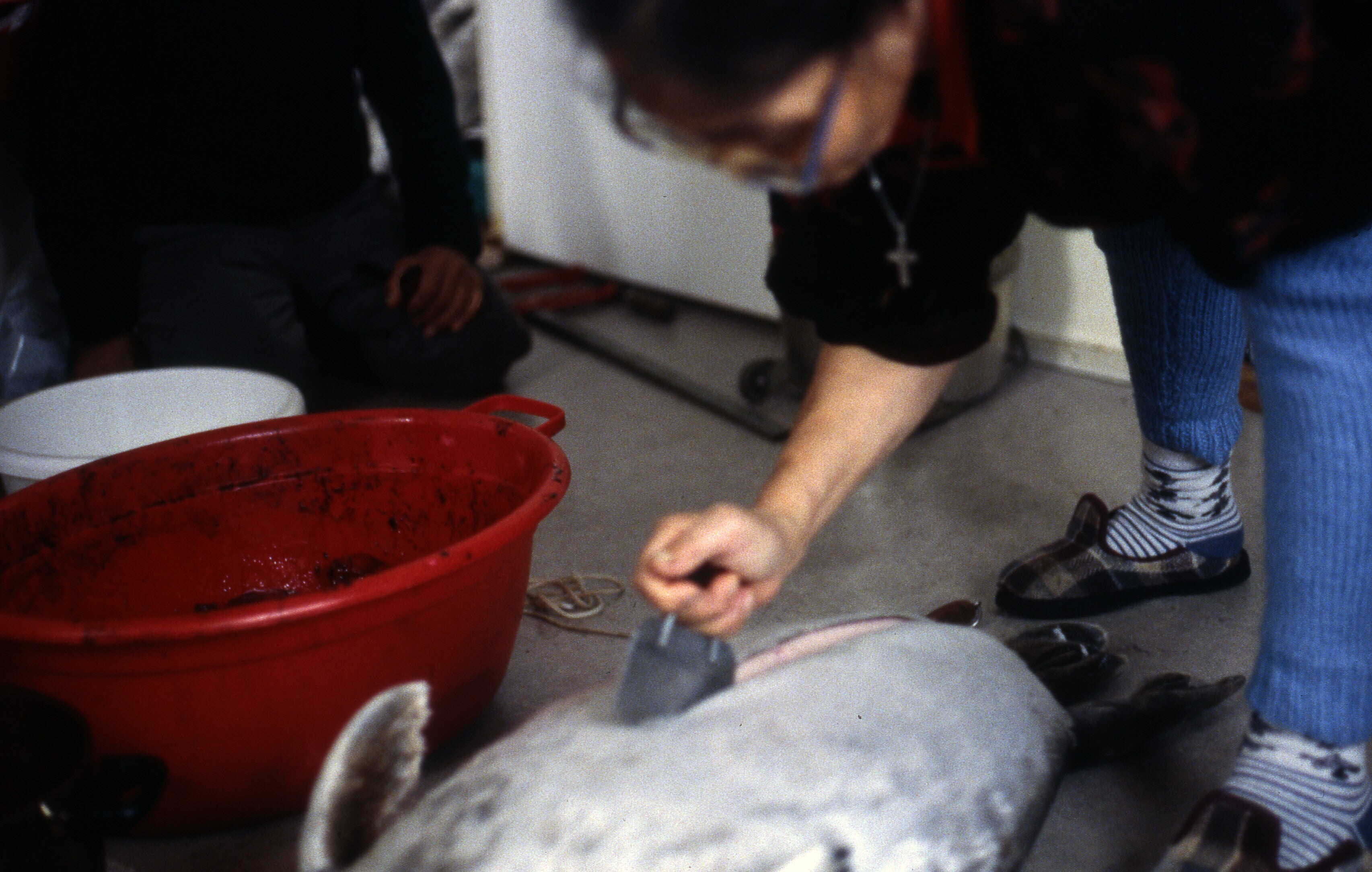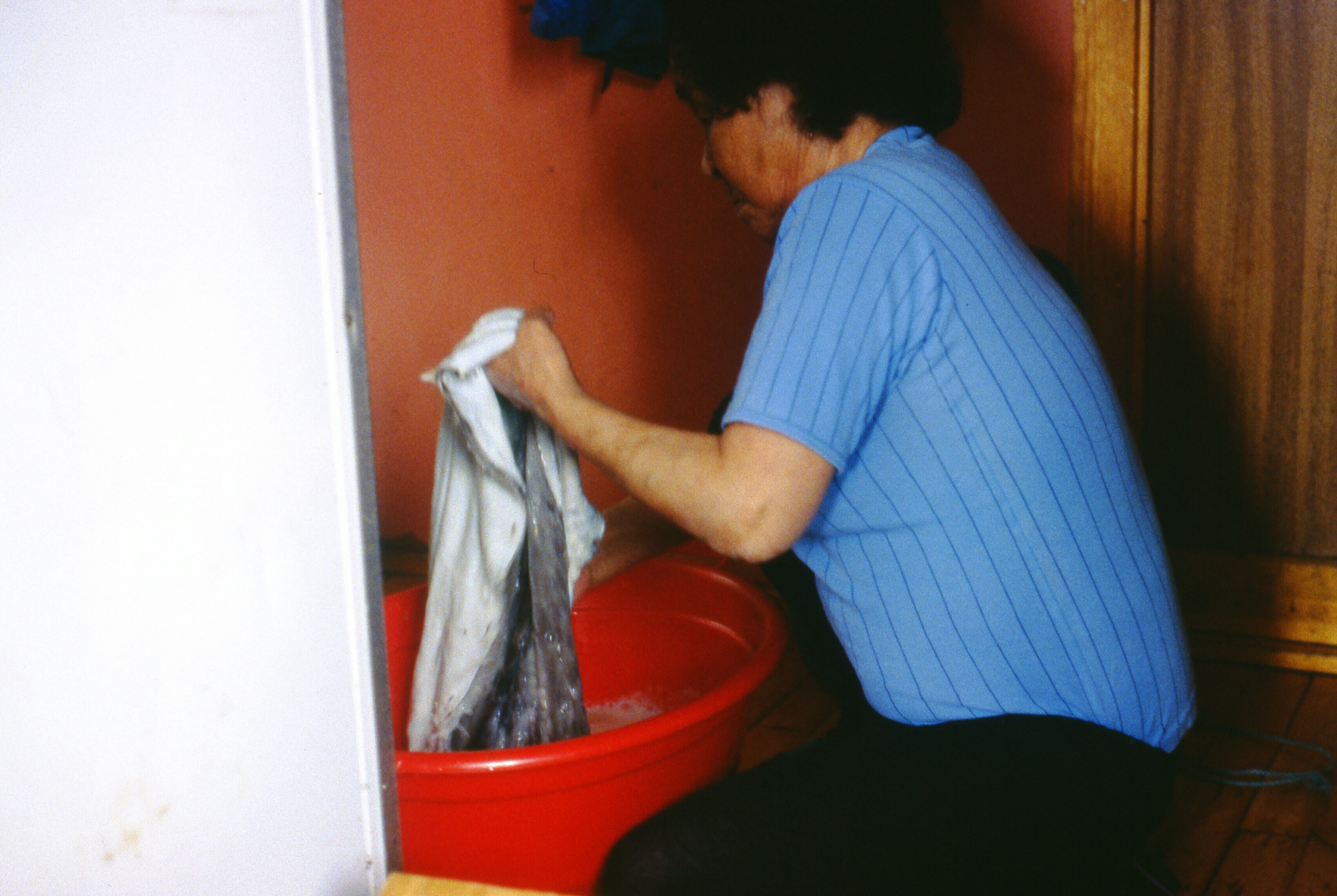 Asta Jonathansen wast een zeehondenhuid in een teil ...