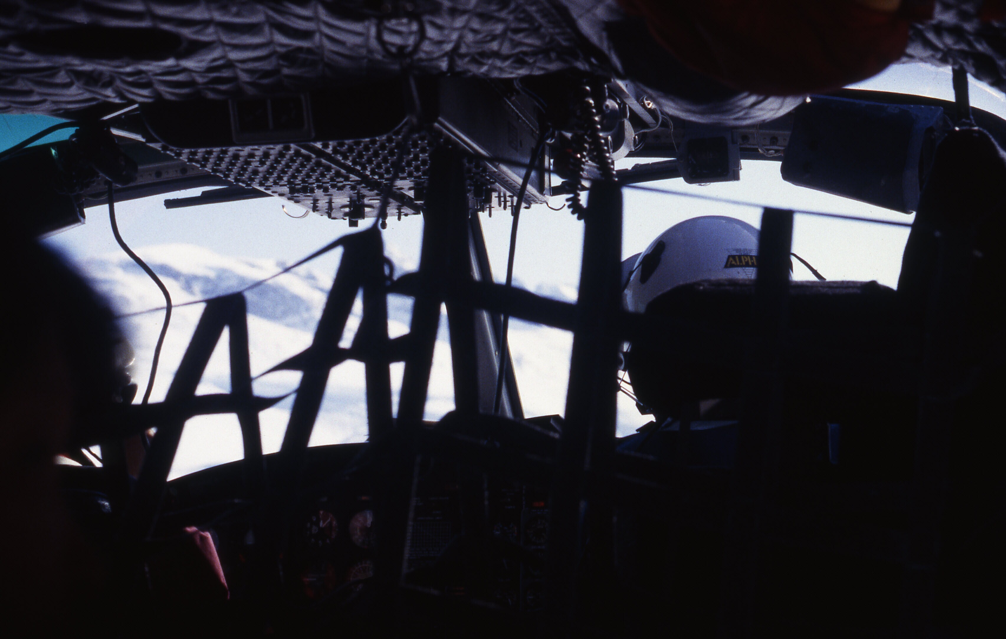 Interieur van een helicopter tijdens een vlucht van ...