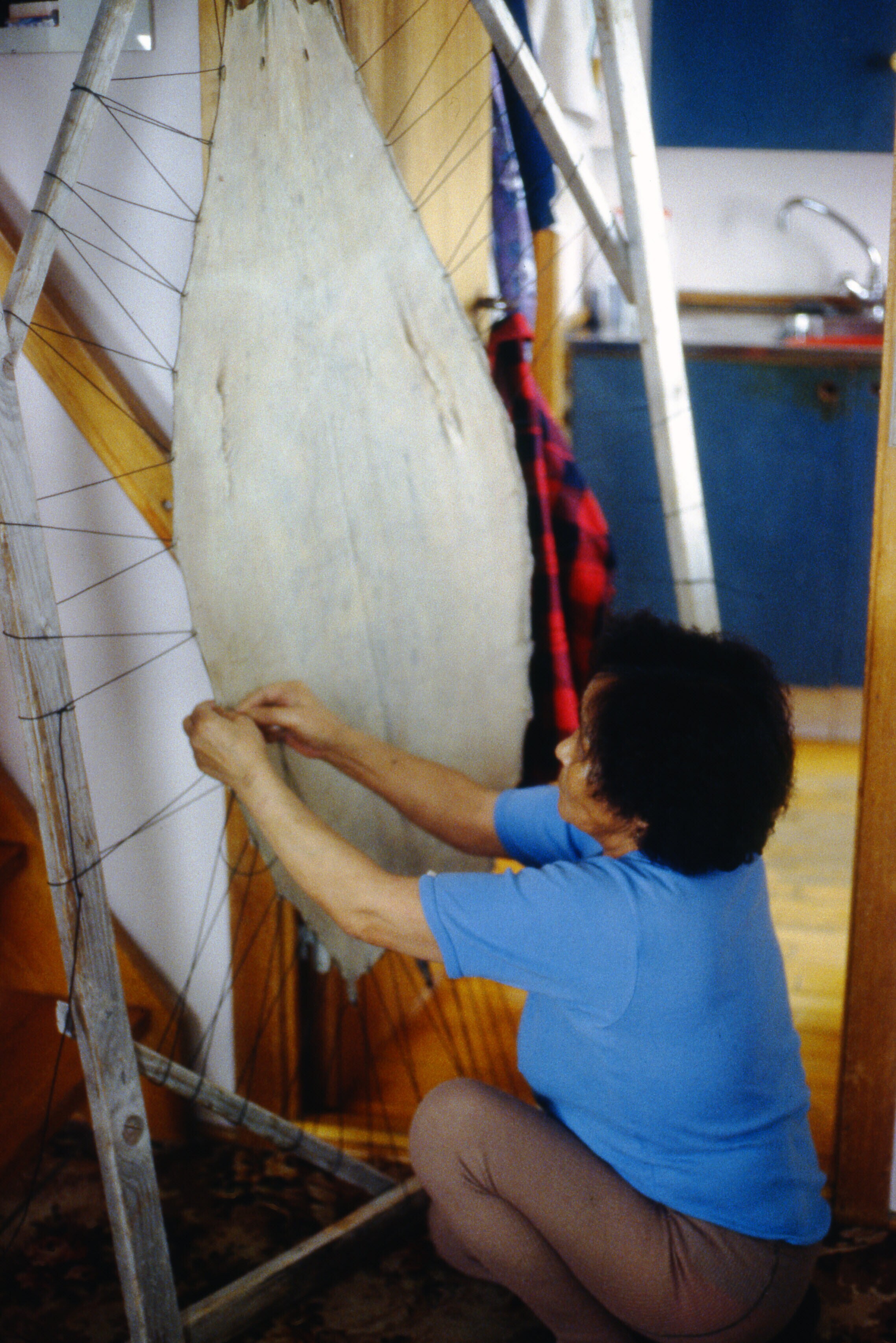 Asta Jonathansen spant een zeehondehuid op in een da...