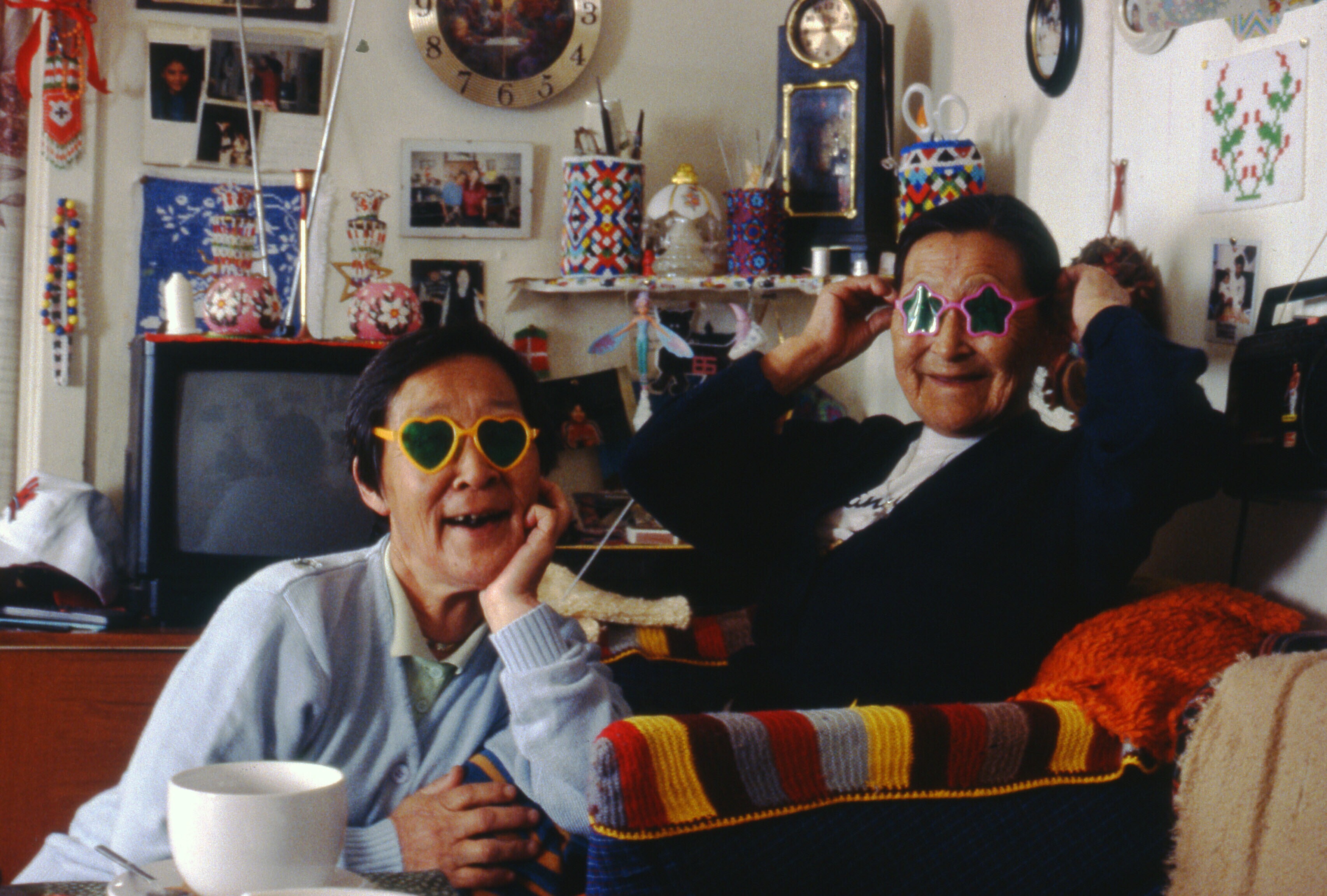 Twee Inuit meisjes in een huis in Tiniteqilaaq, maart .