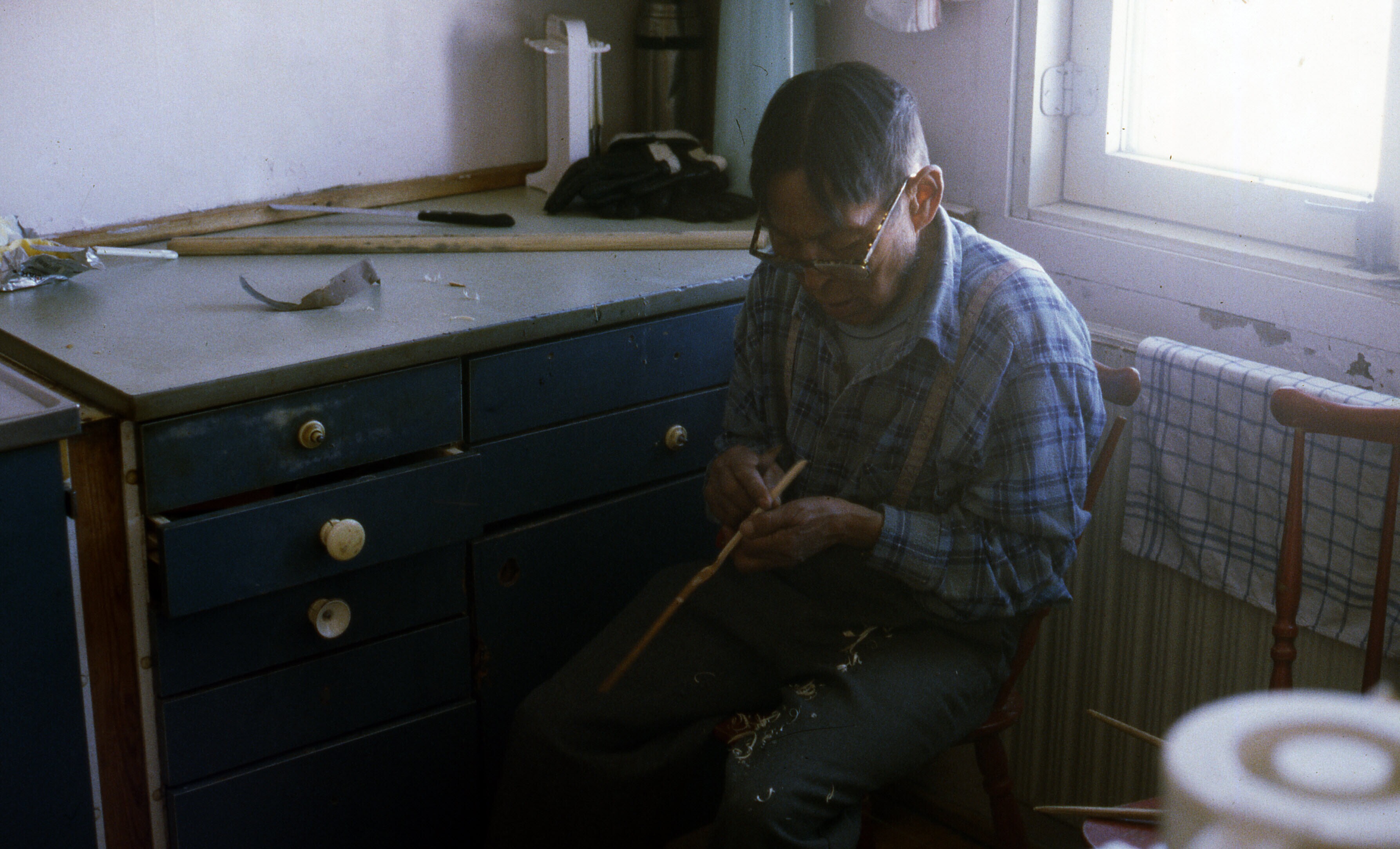 Inuit kunstenaar Per Brodersen aan het werk in een o...