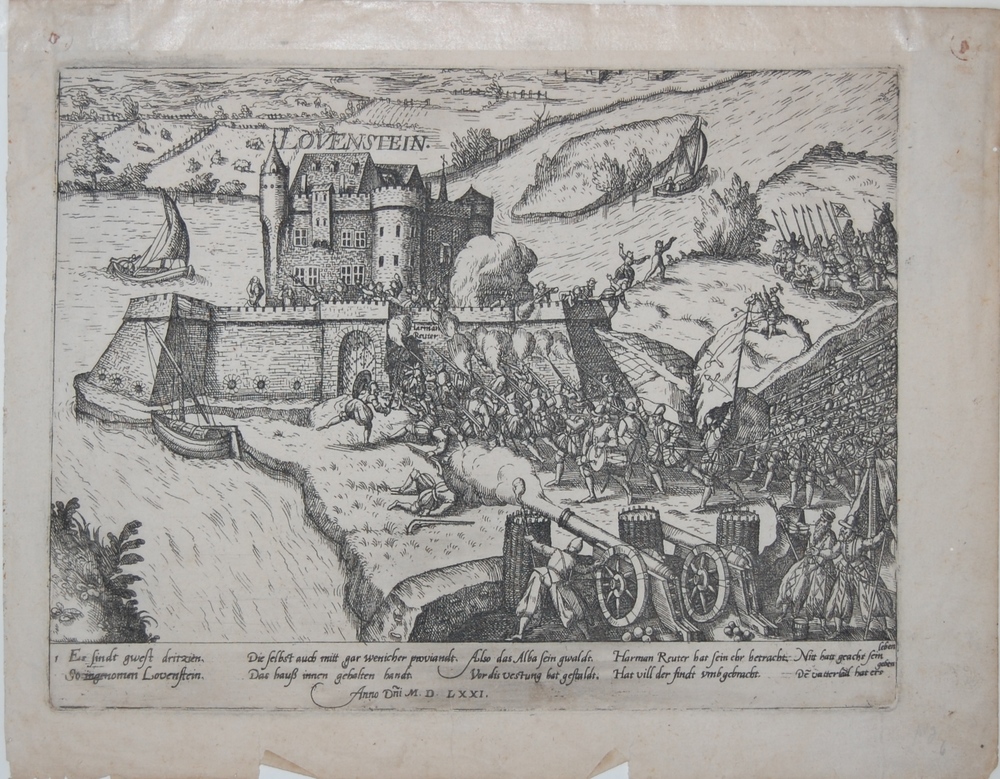 Vierdelige prent met twee keer slot Loevestein, Hugo...