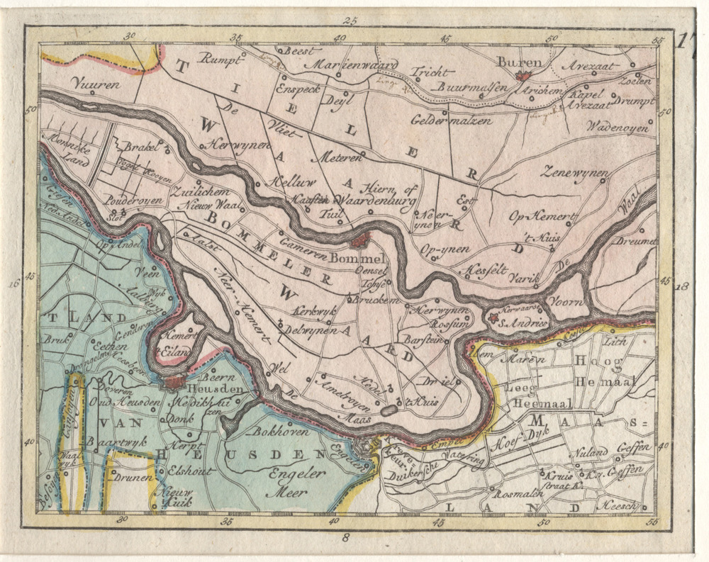 Kaartje van de Bommelerwaard. Topografische aanduidi...