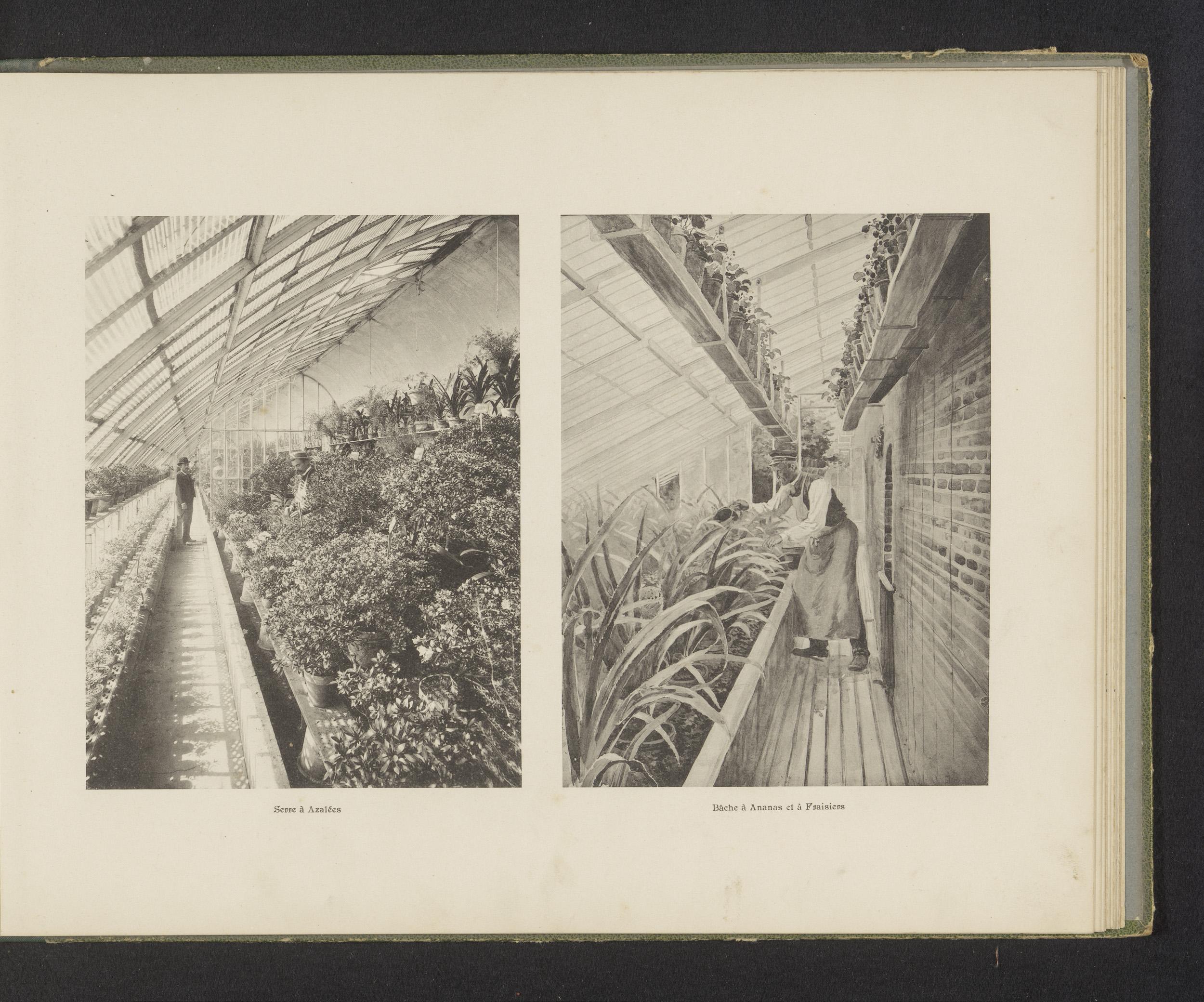 Twee gezichten op interieurs van de serres van de Éc...