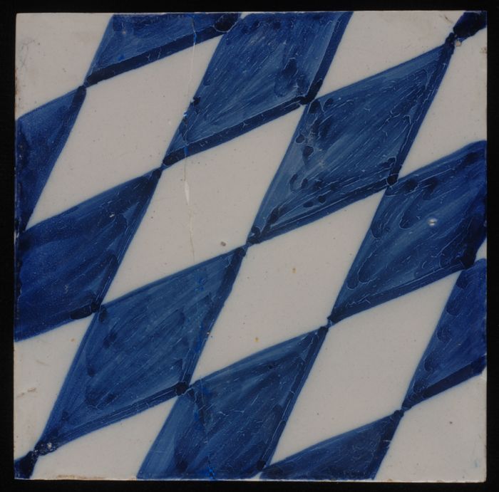 Tegel, blauw op wit, met de afbeelding van een ruitp...