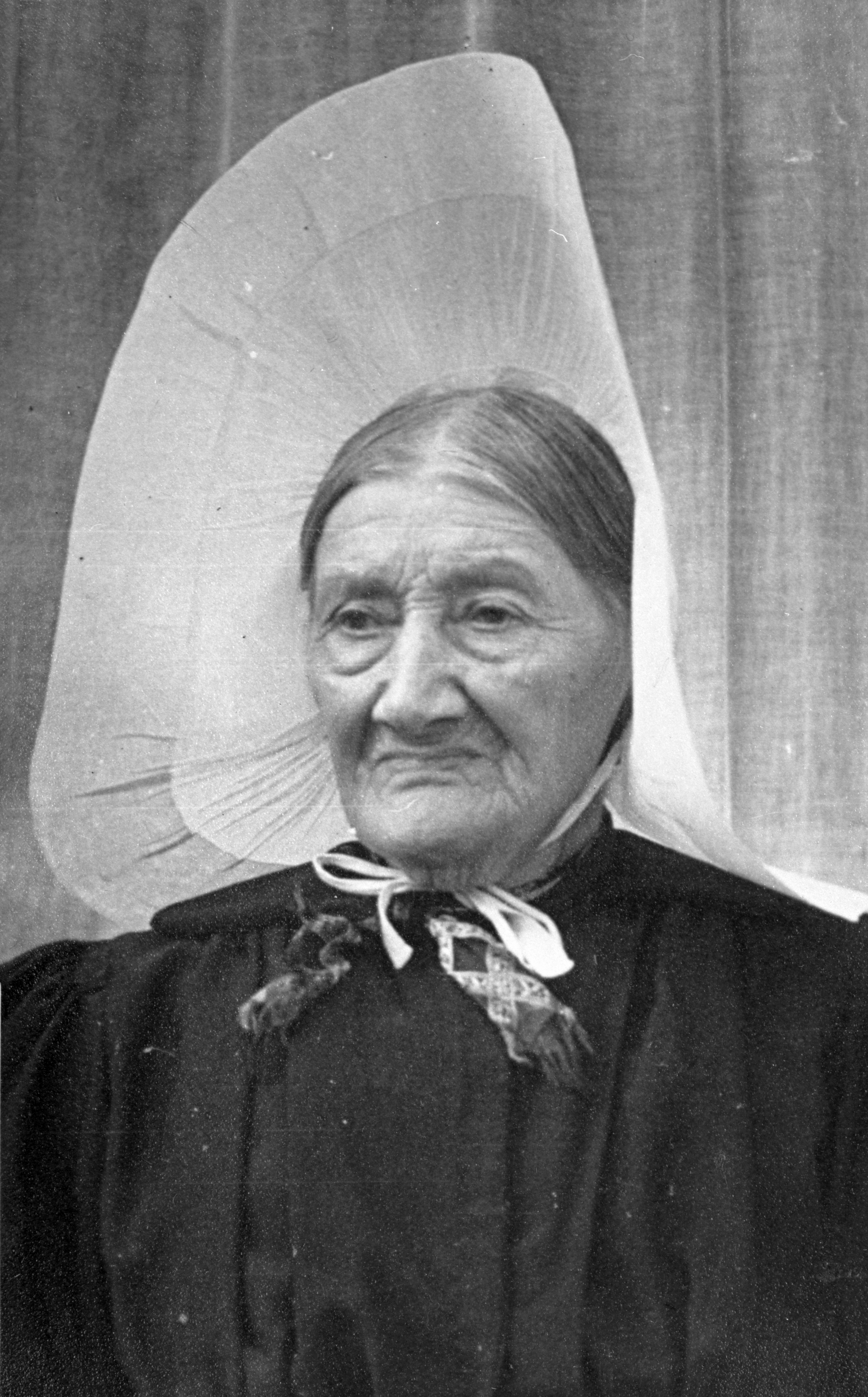 Oude vrouw met rouw isobé kostuum