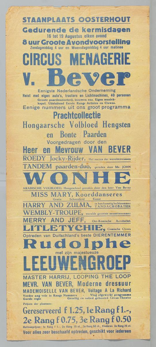 Circus Menagerie v. Bever - voorstelling te Oosterho...