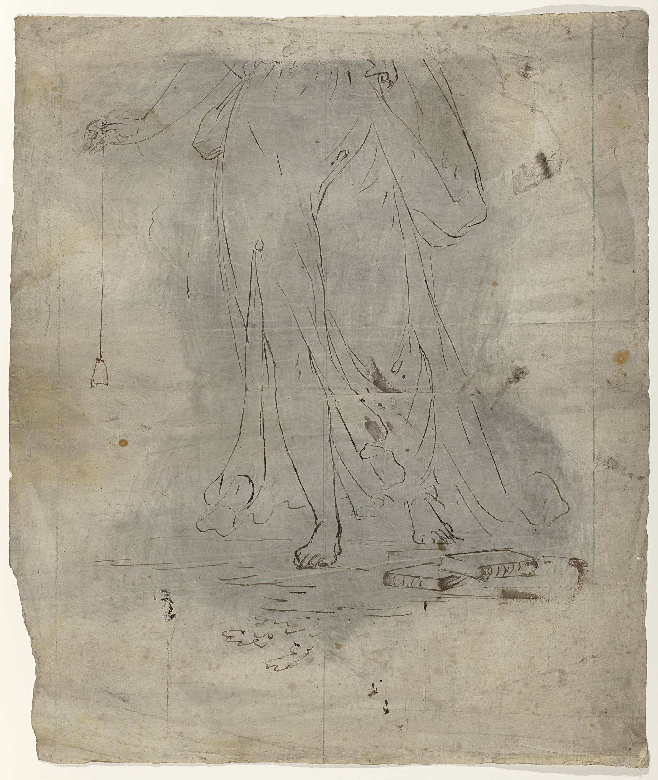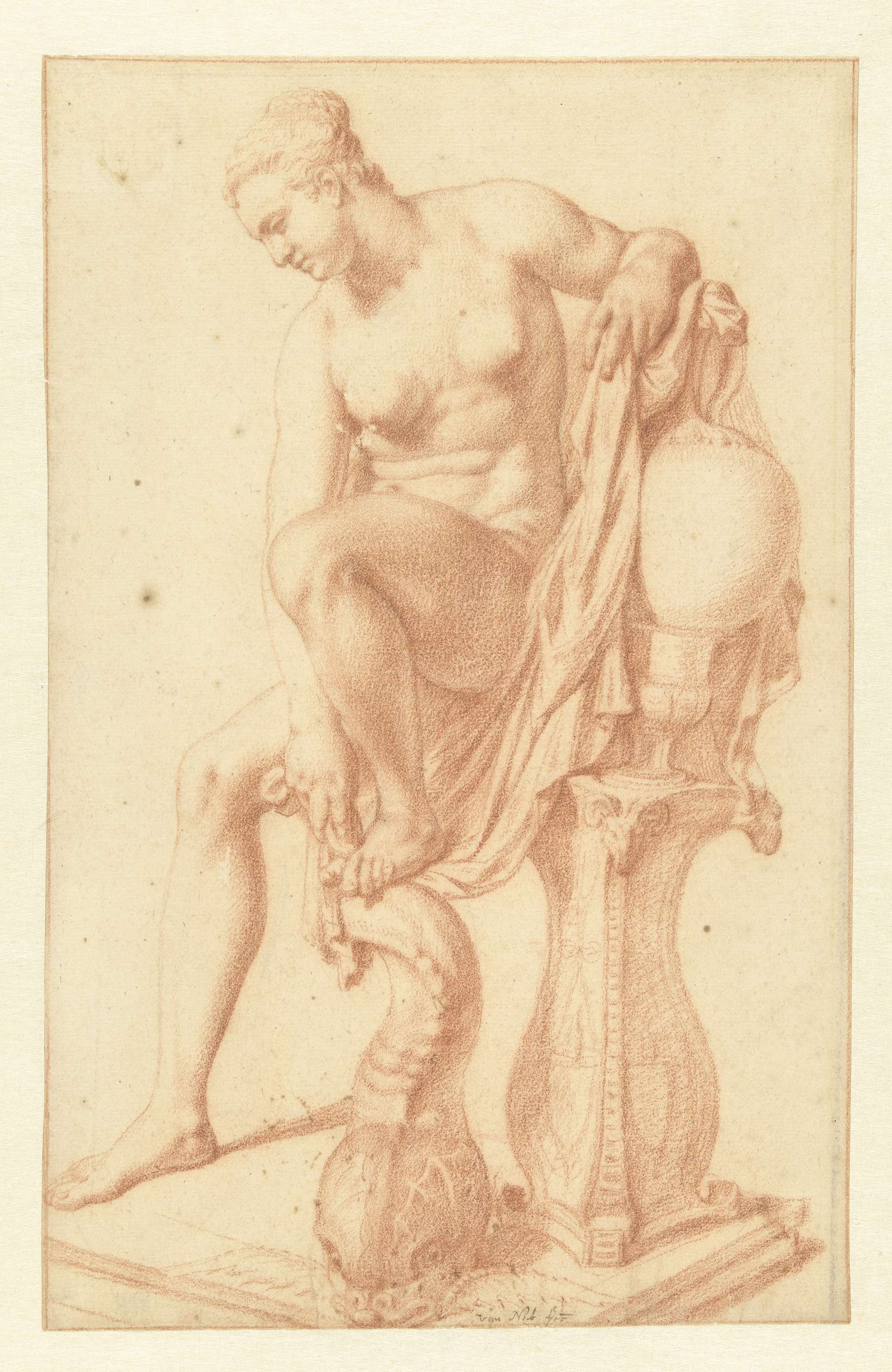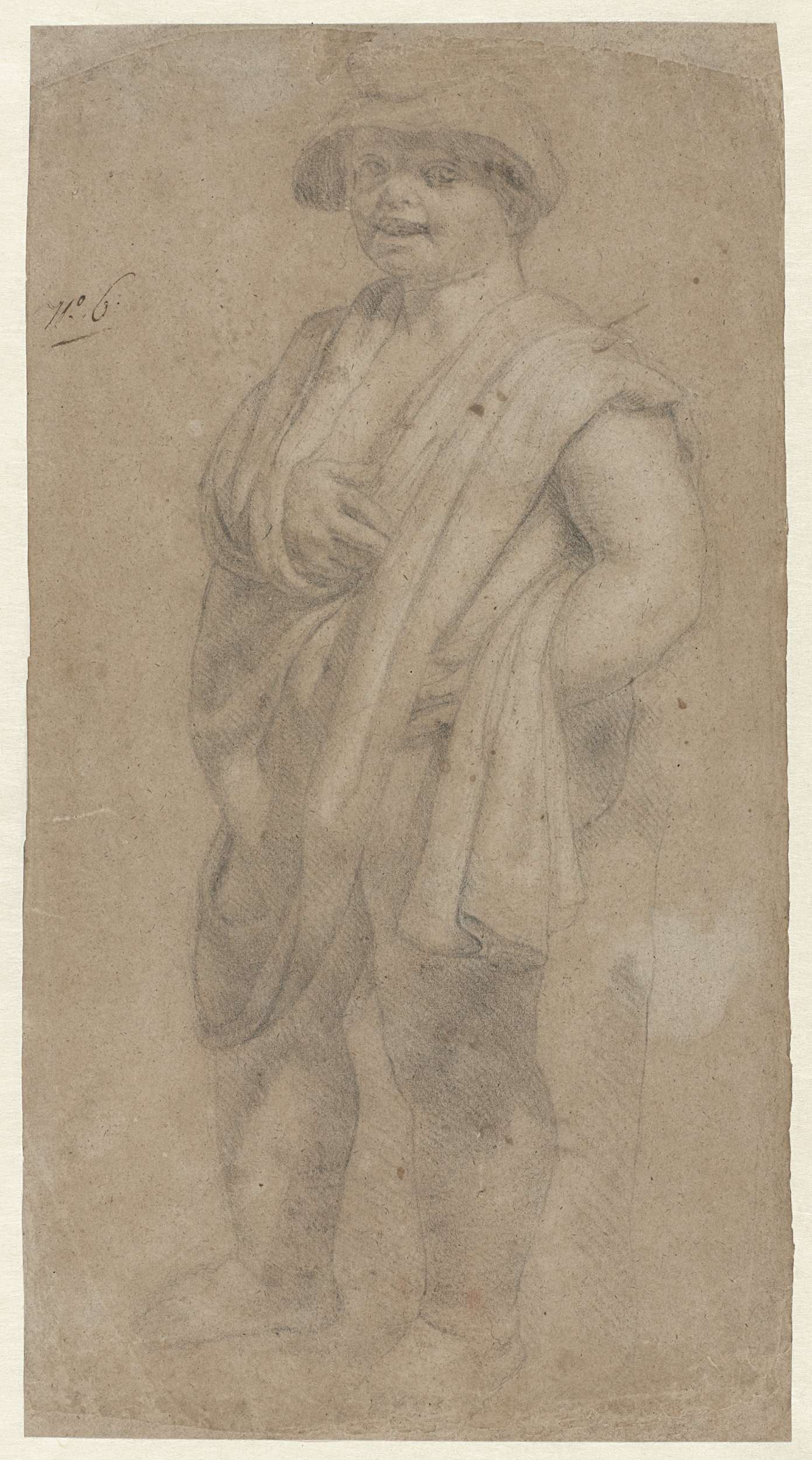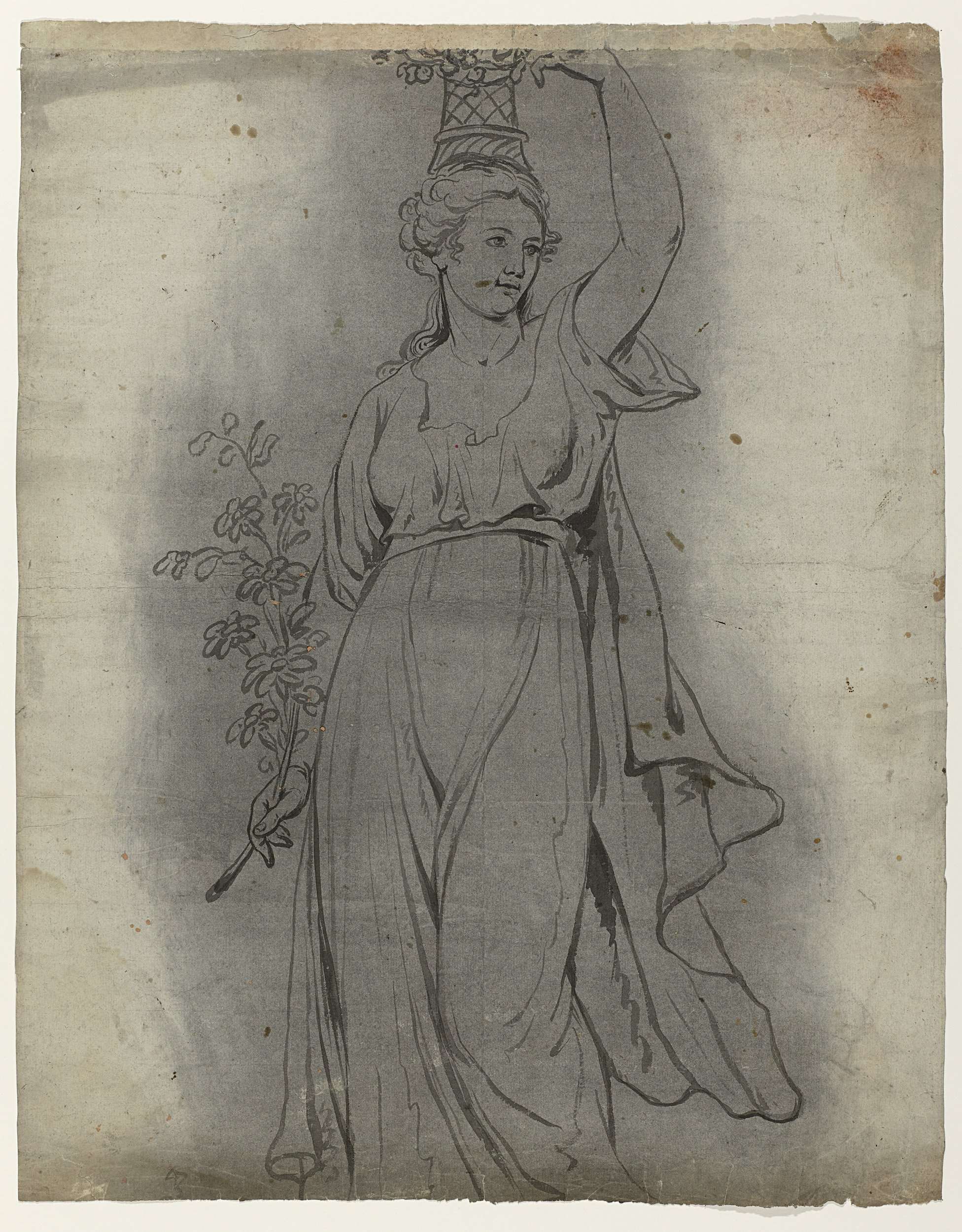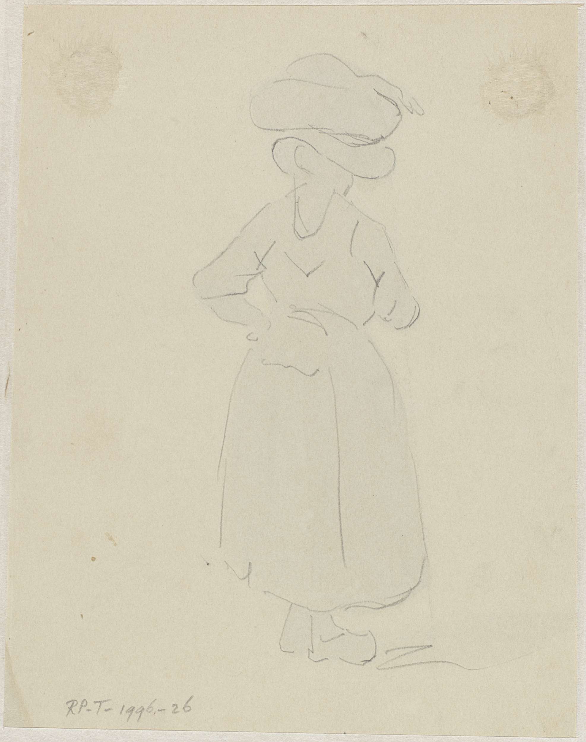 Figuurstudie van een vrouw met een mand op het hoofd...