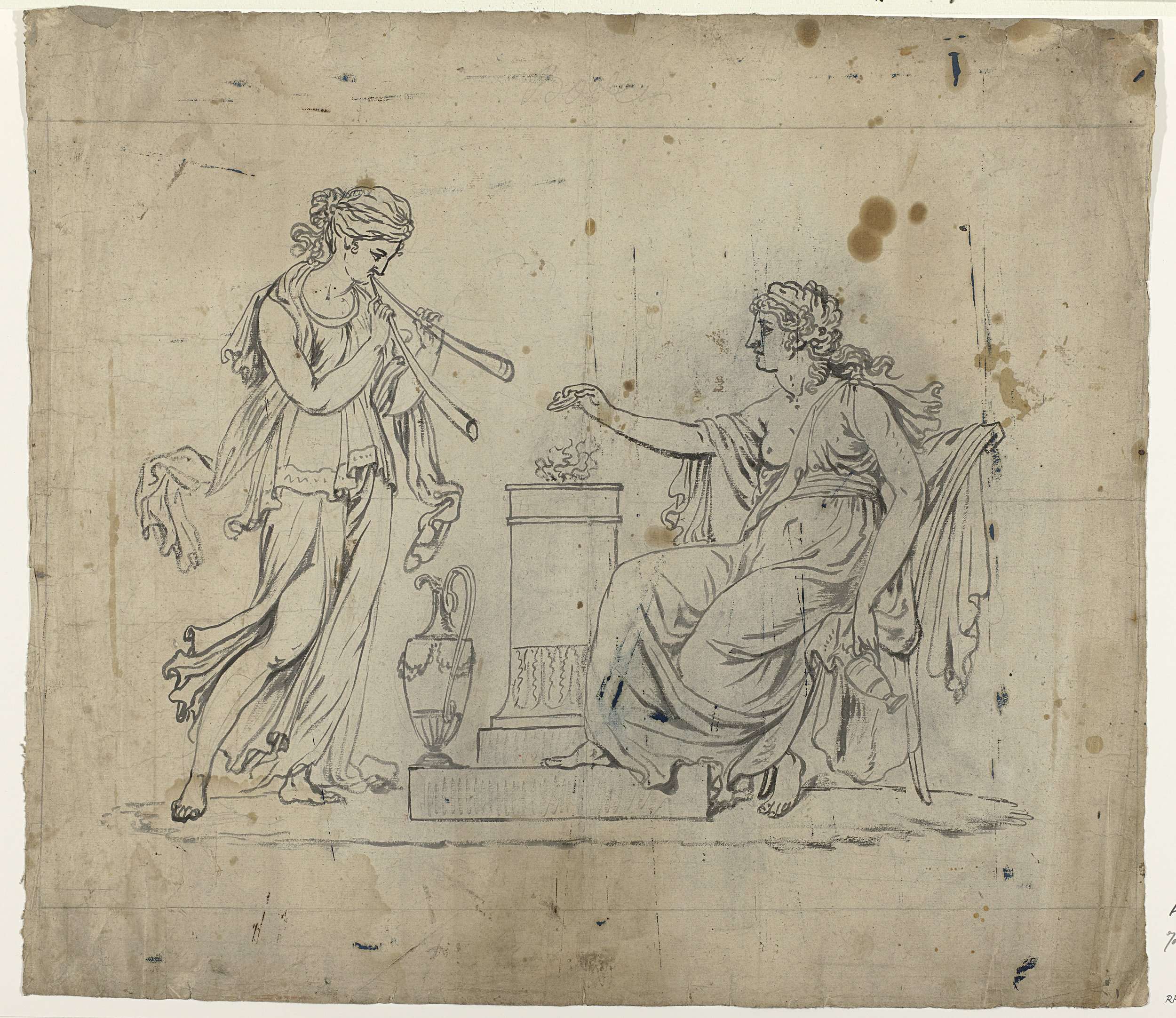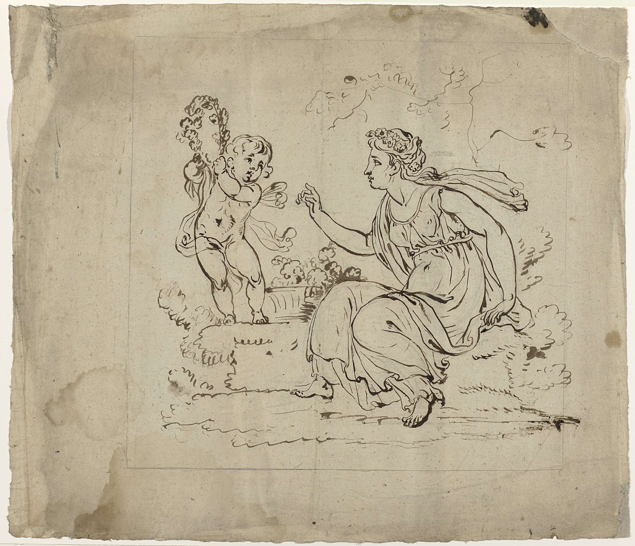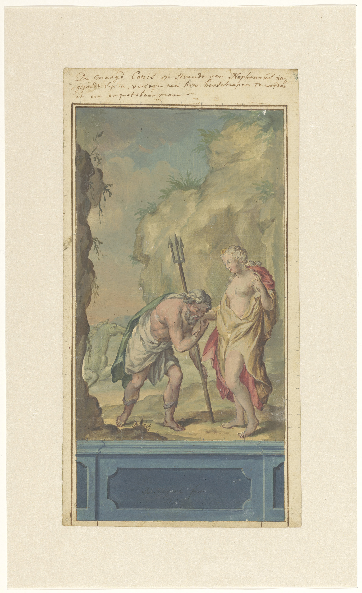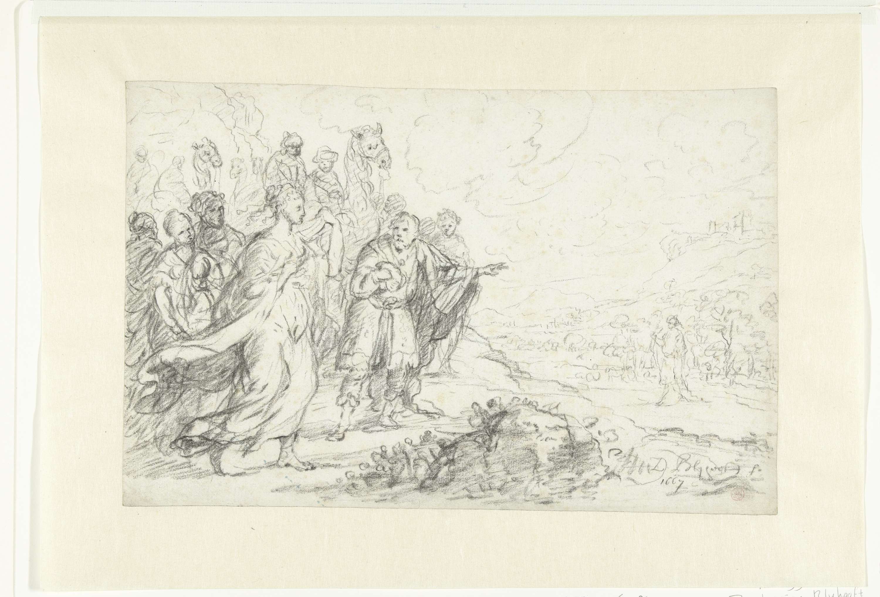 Figuurstudie van een vrouw met een mand op het hoofd...