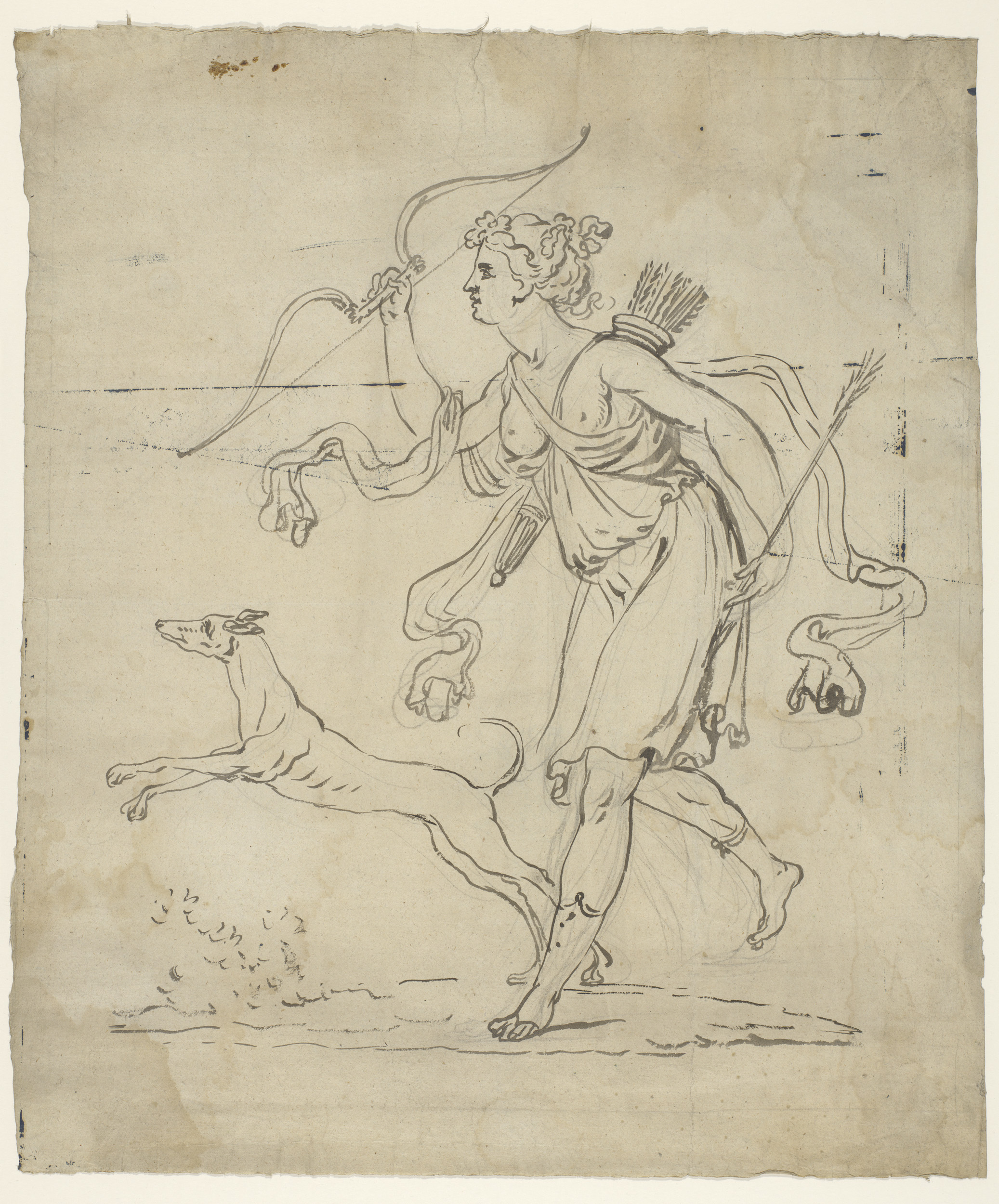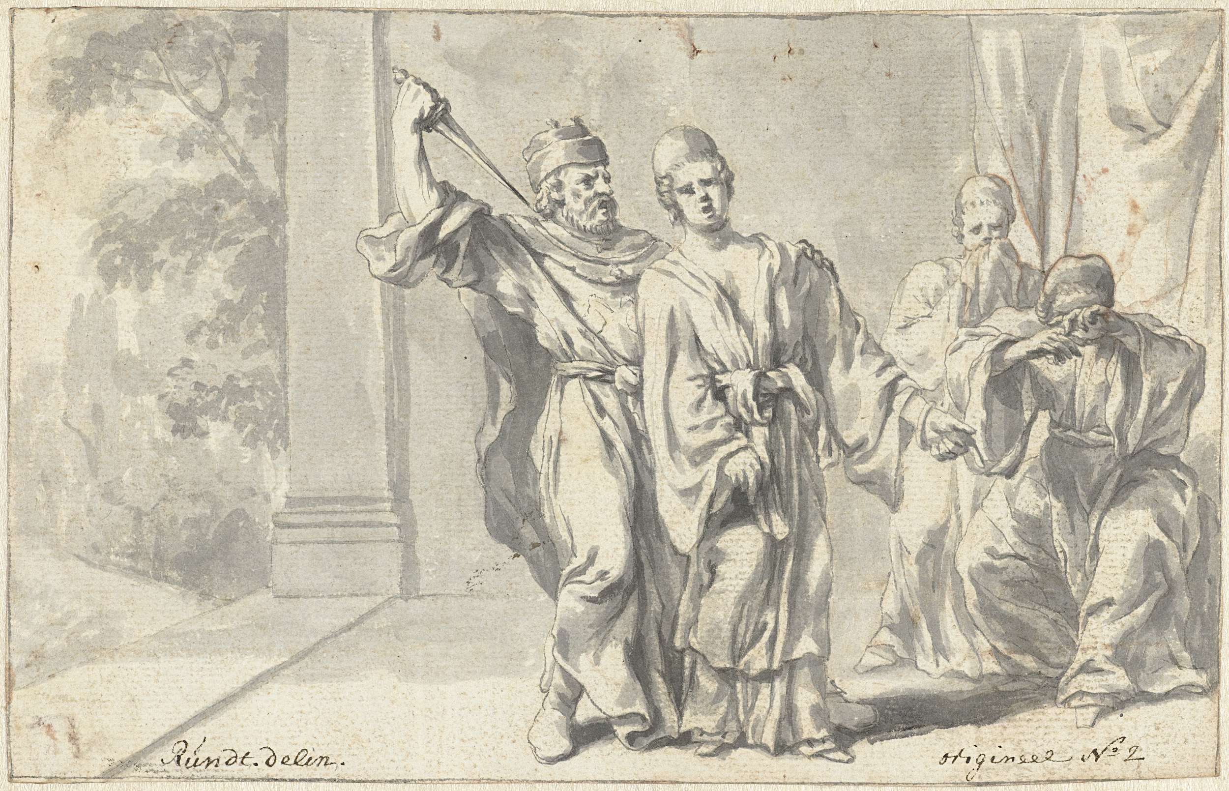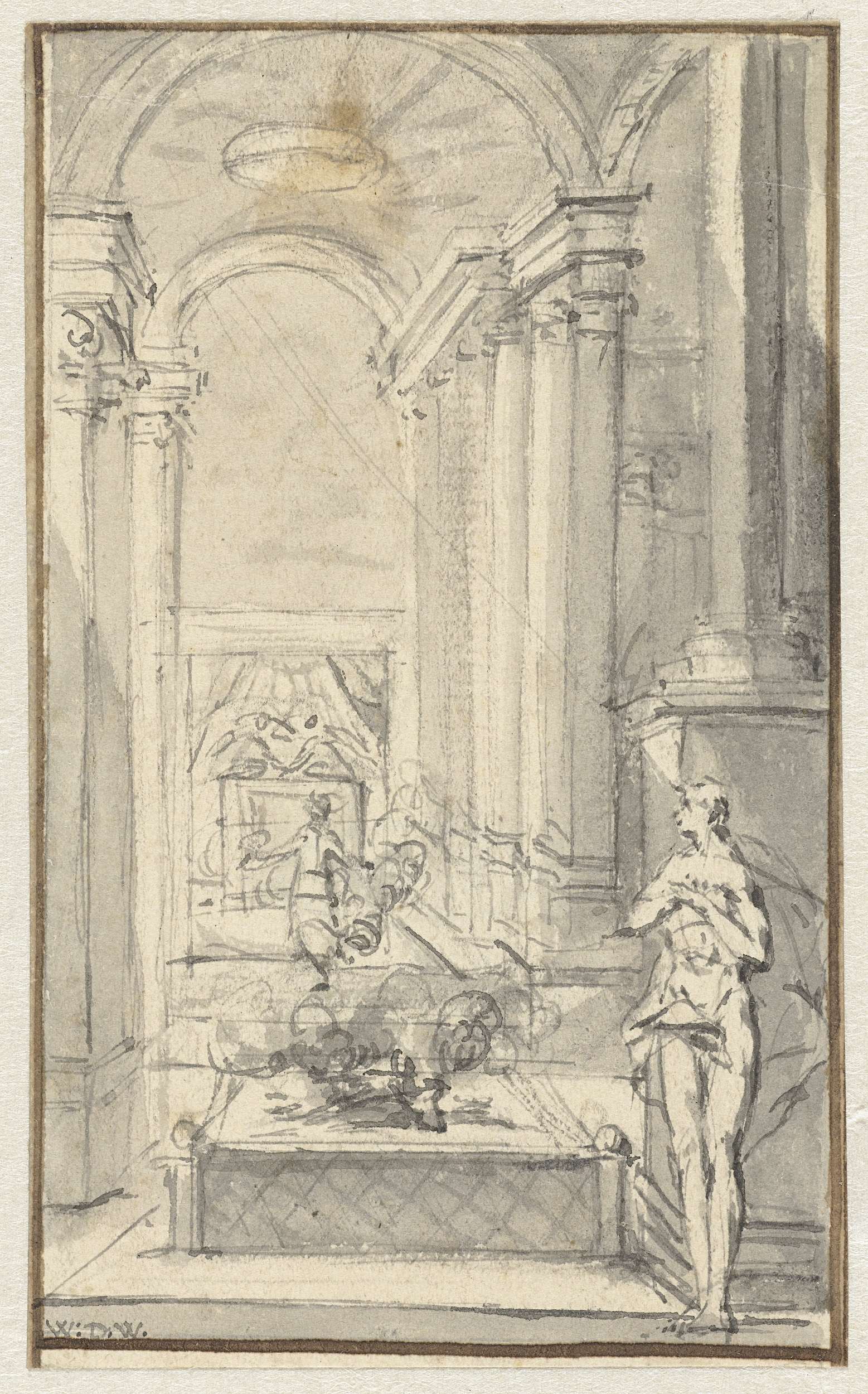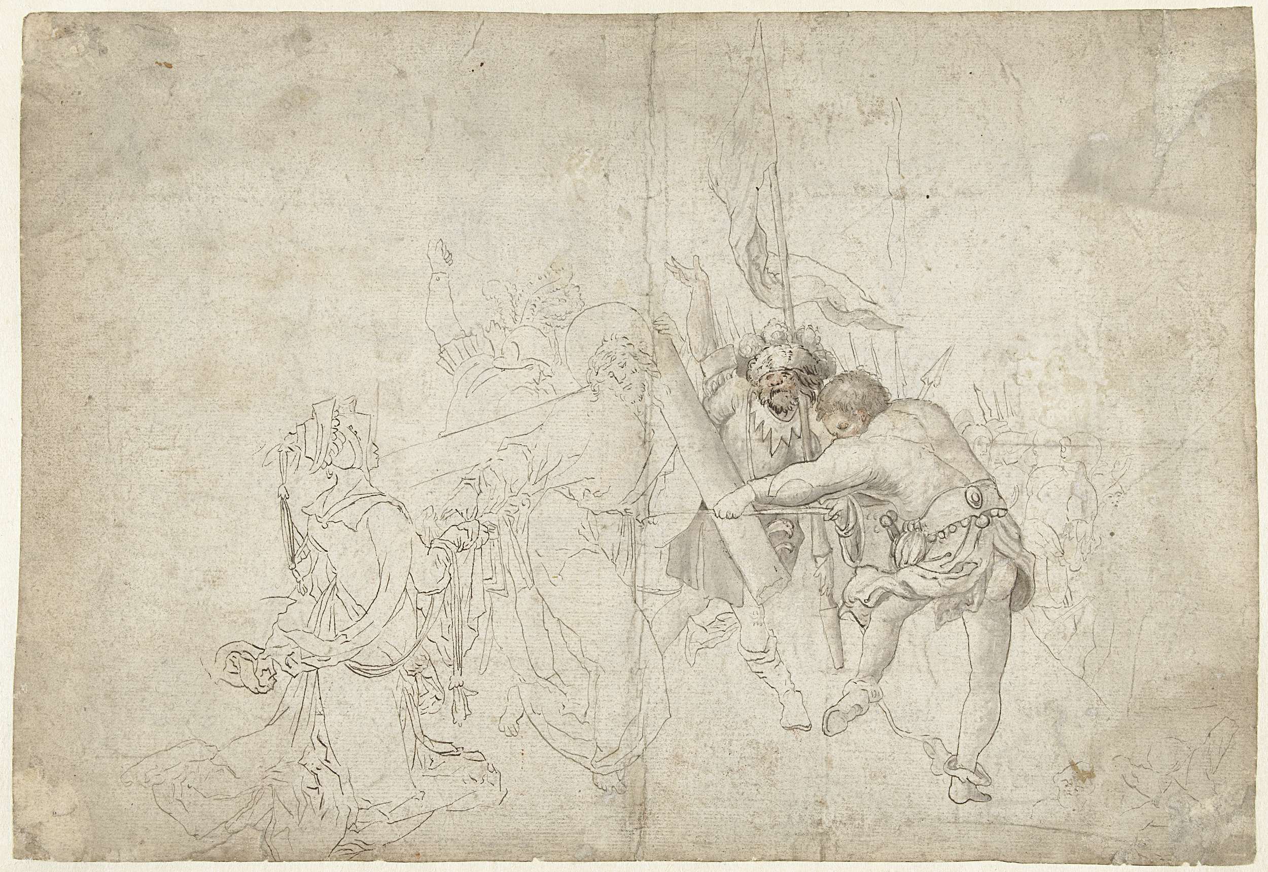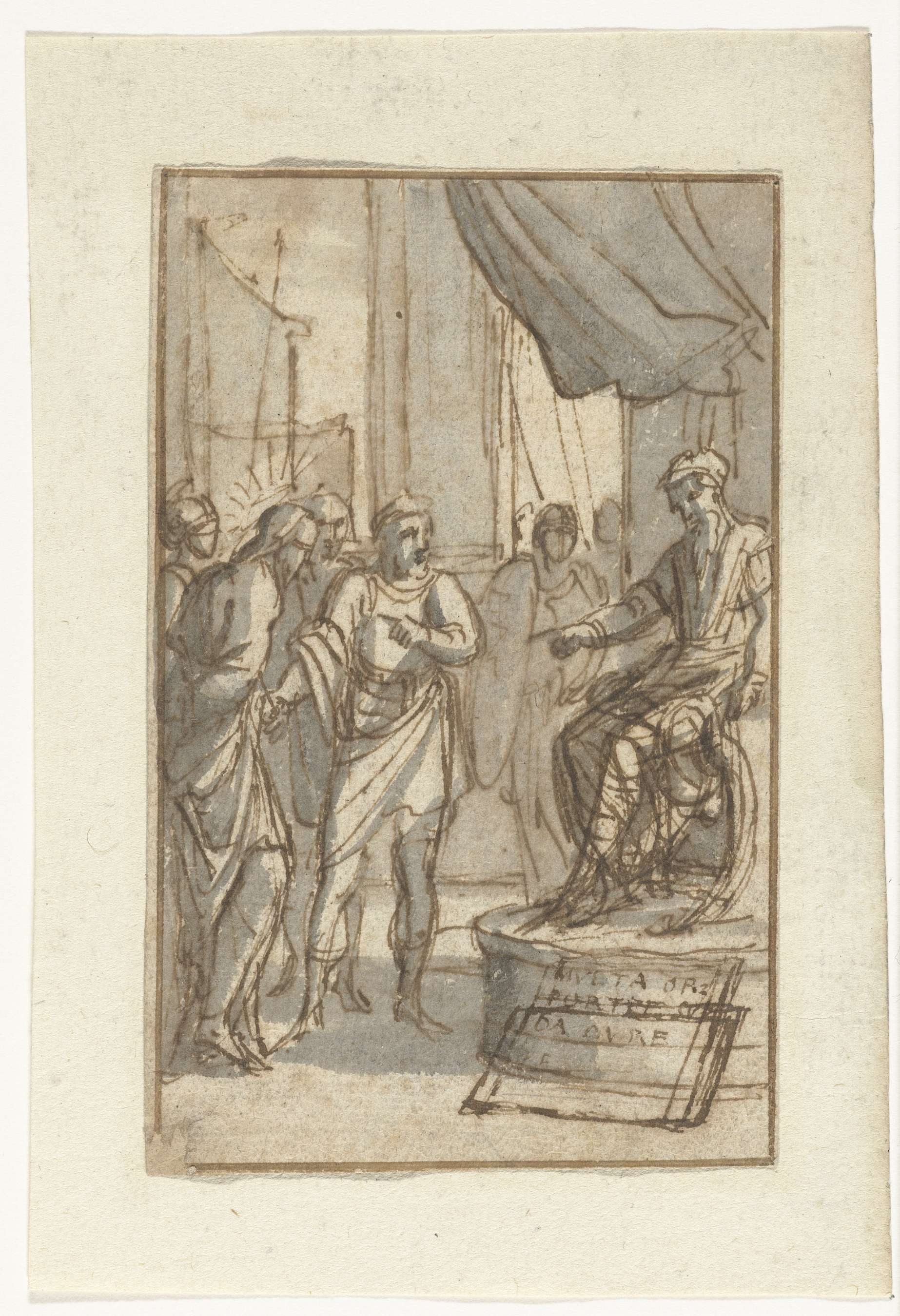 Figuurstudie van een vrouw met een mand op het hoofd...