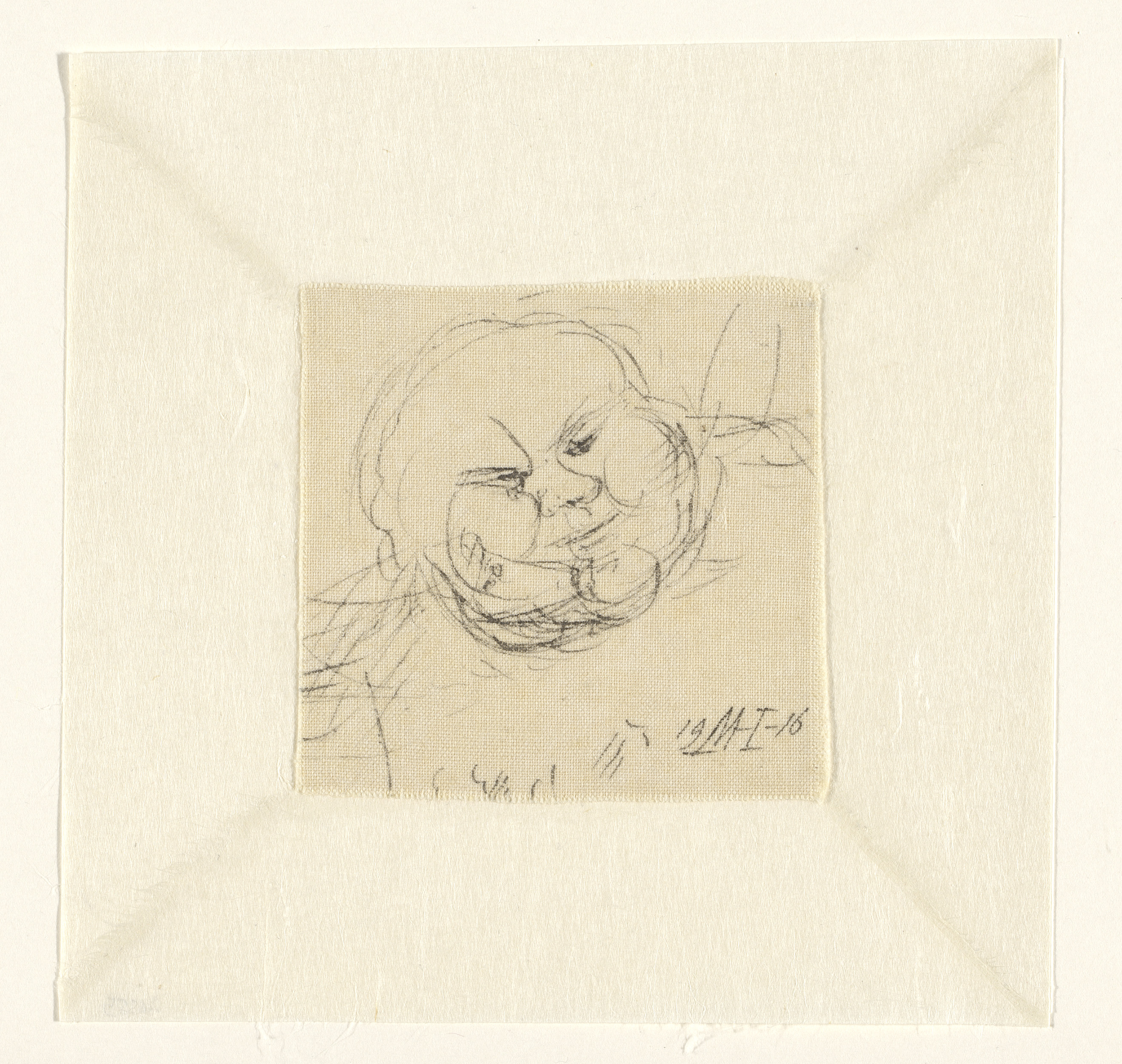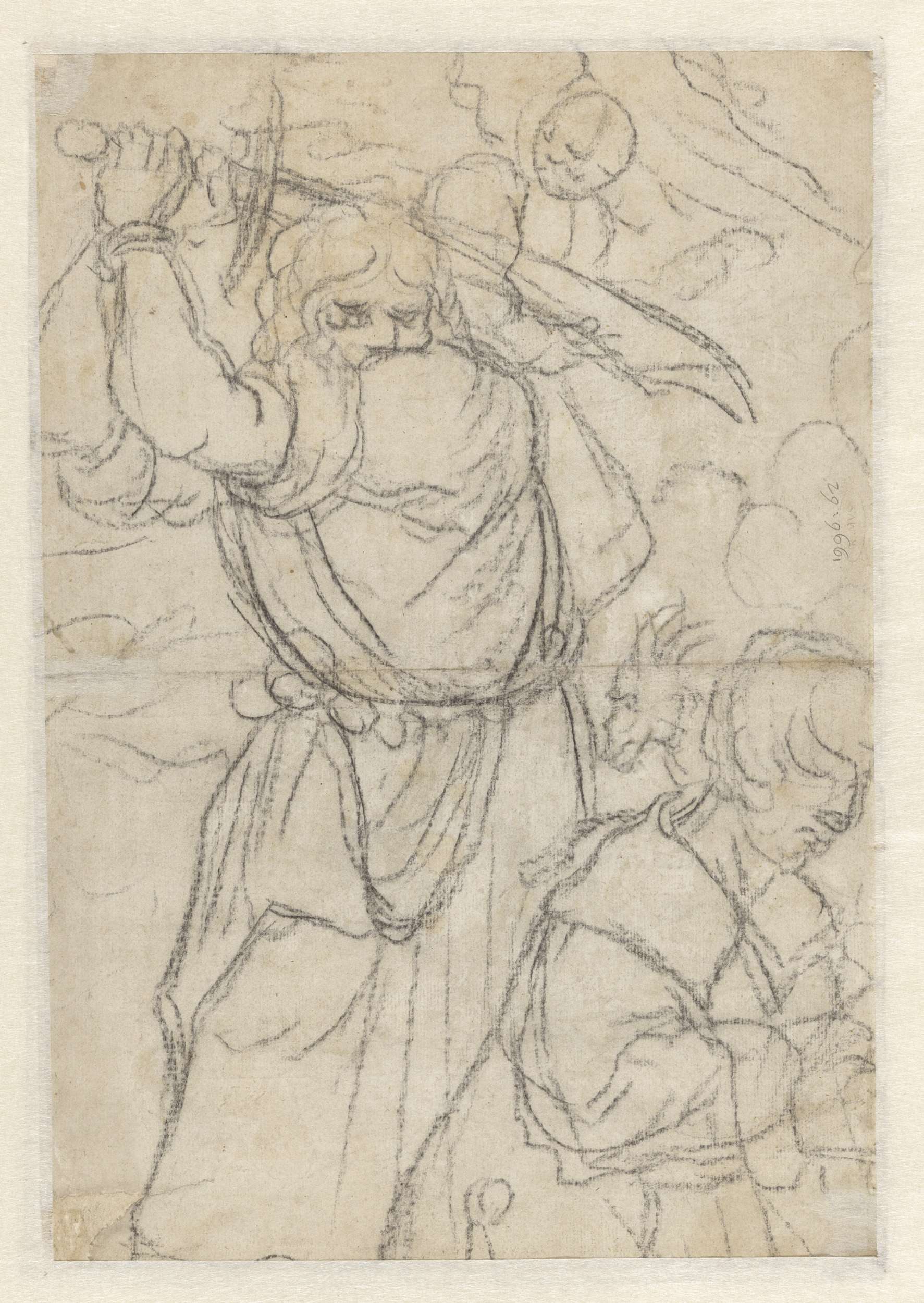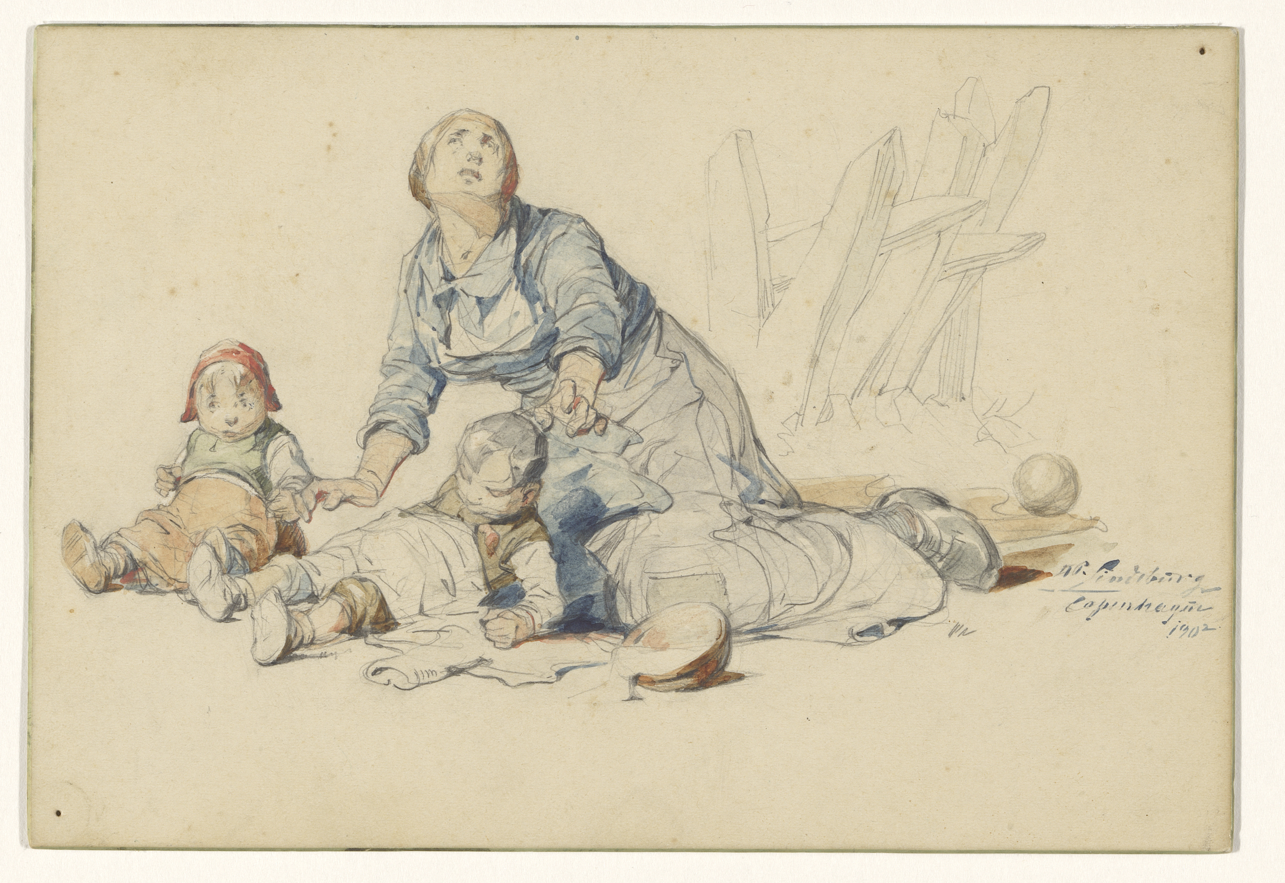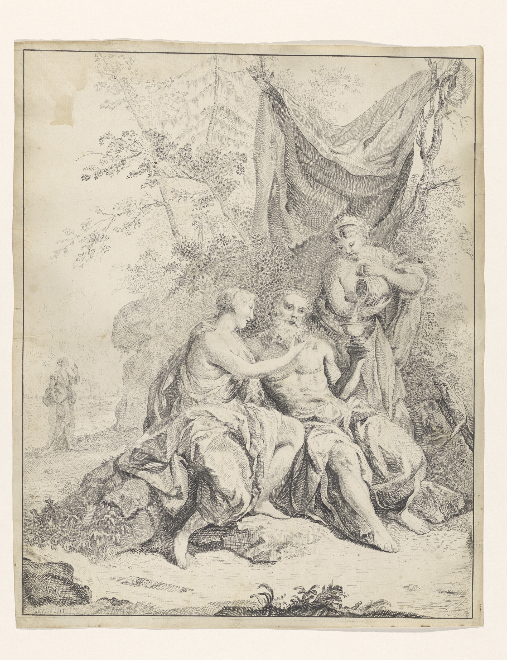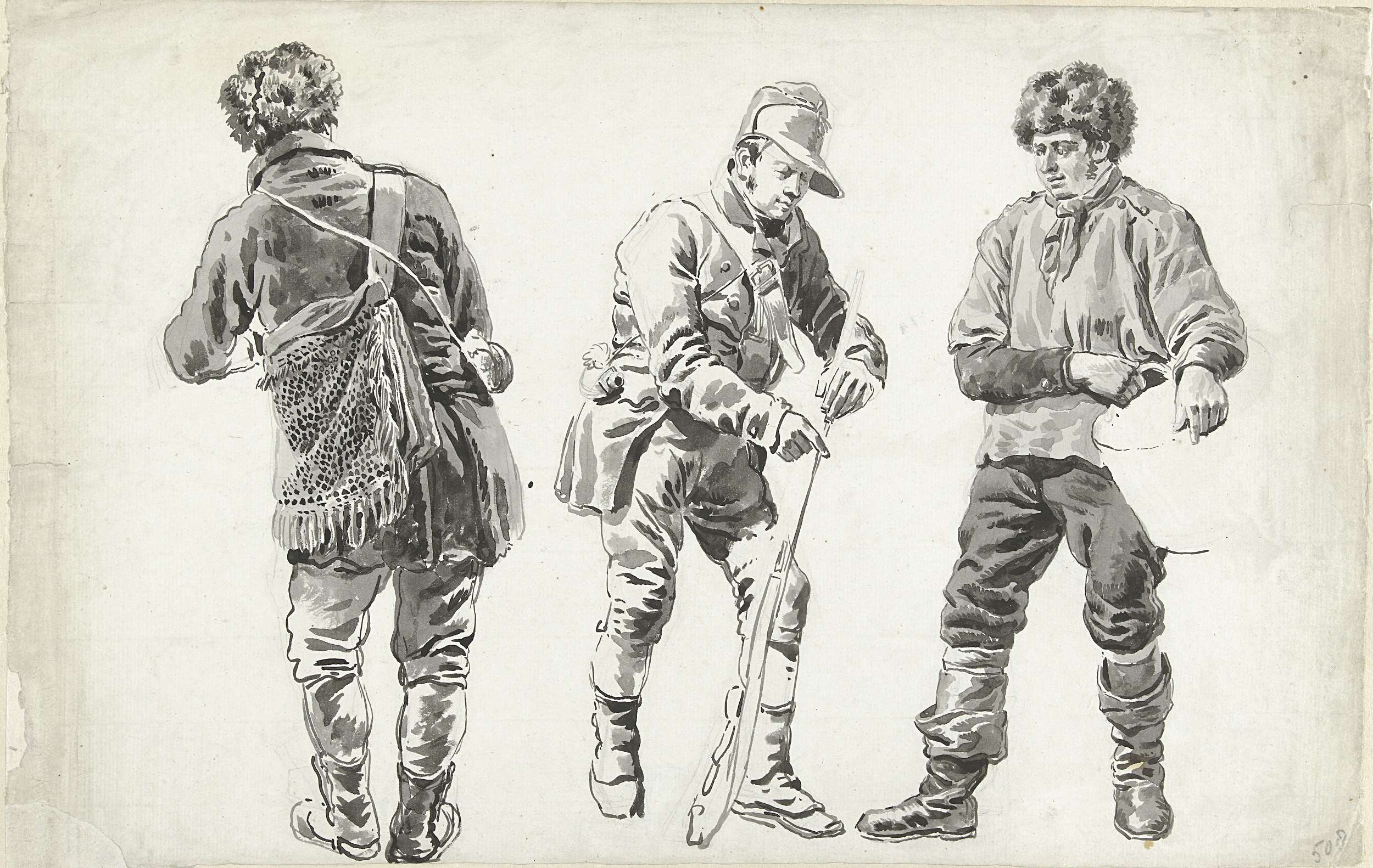 Figuurstudie van een vrouw met een mand op het hoofd...