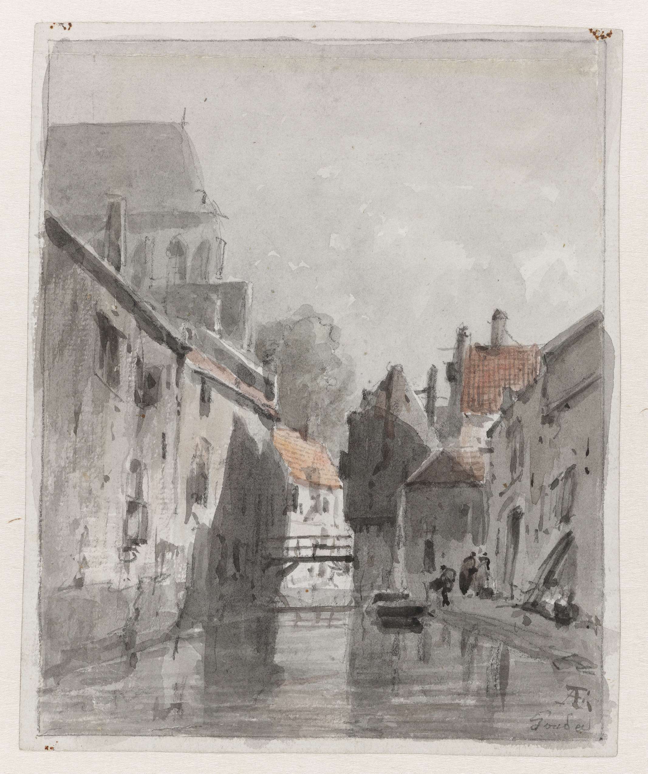 Gezicht op bebouwing langs een vaart aan de rand van...