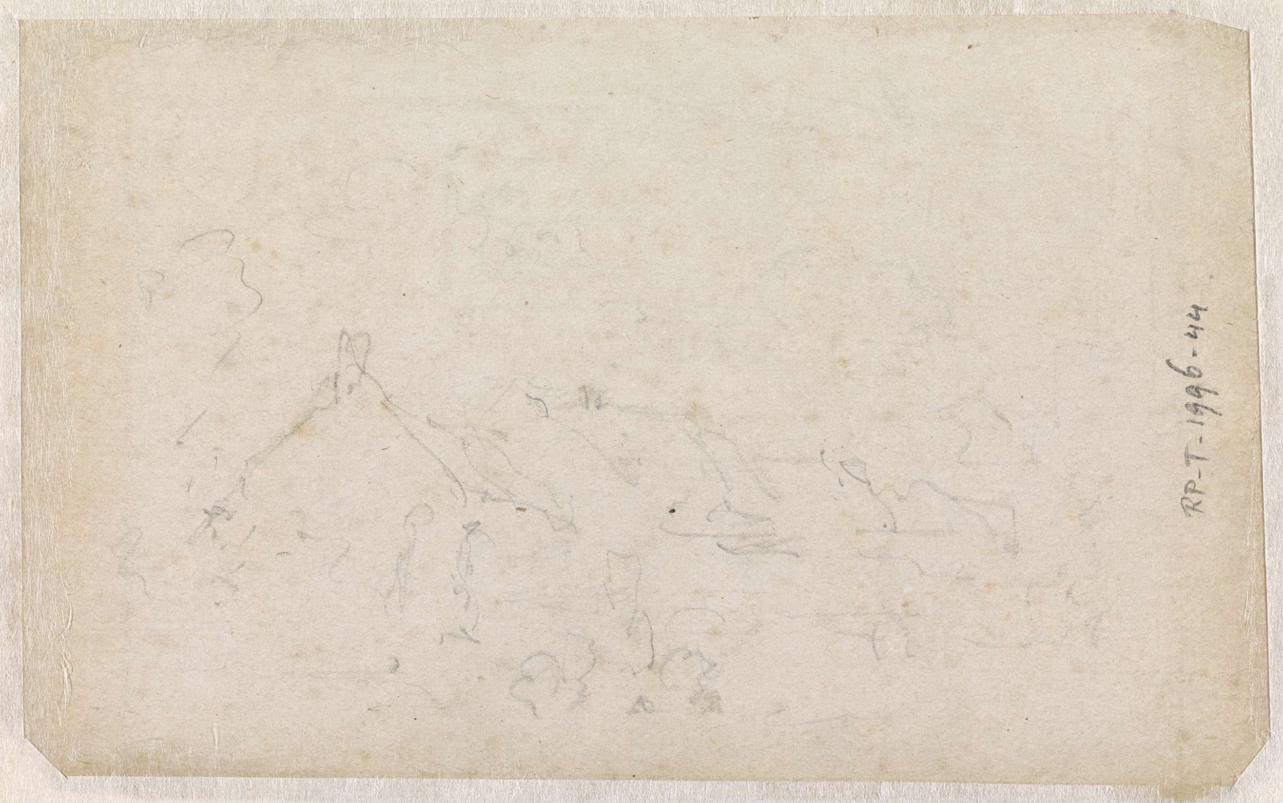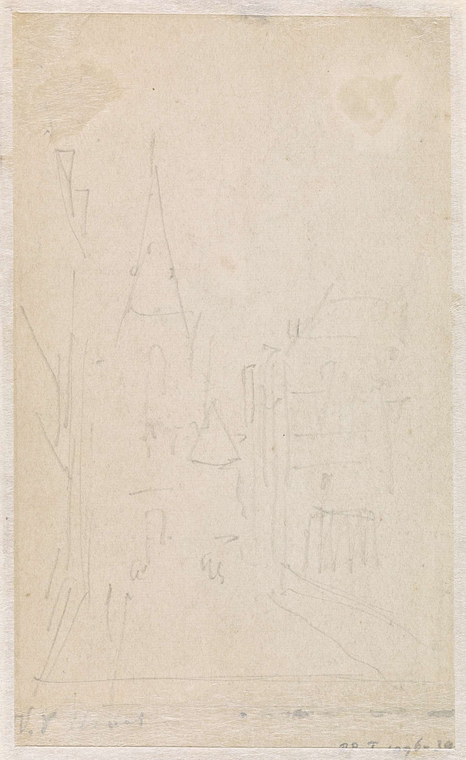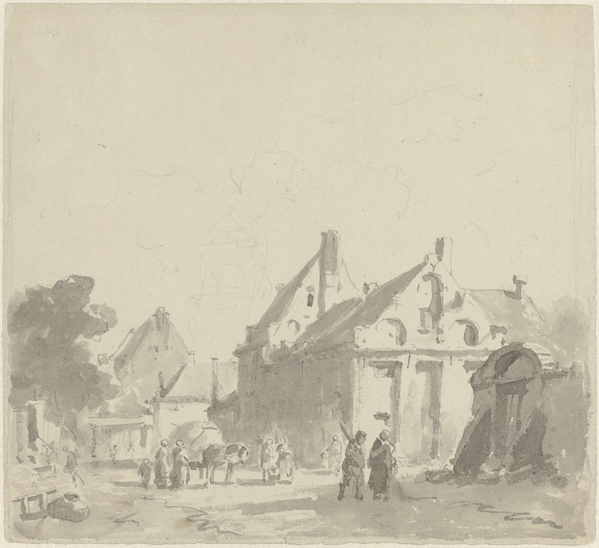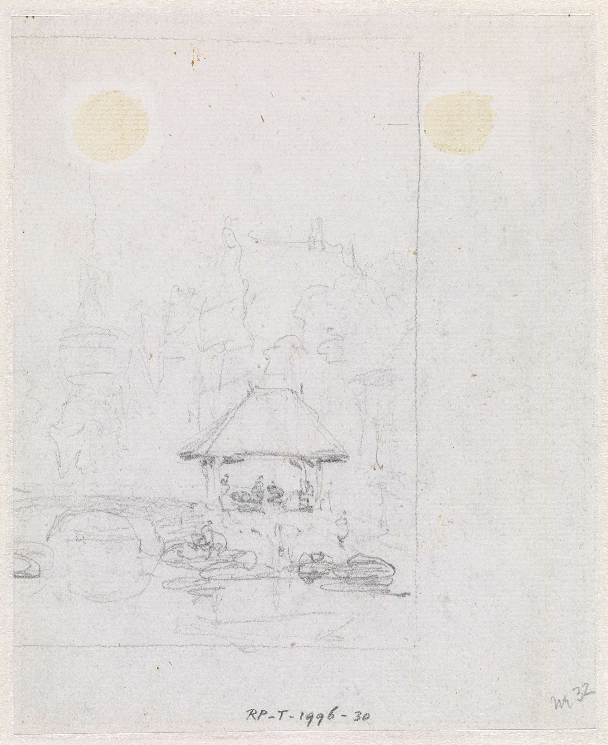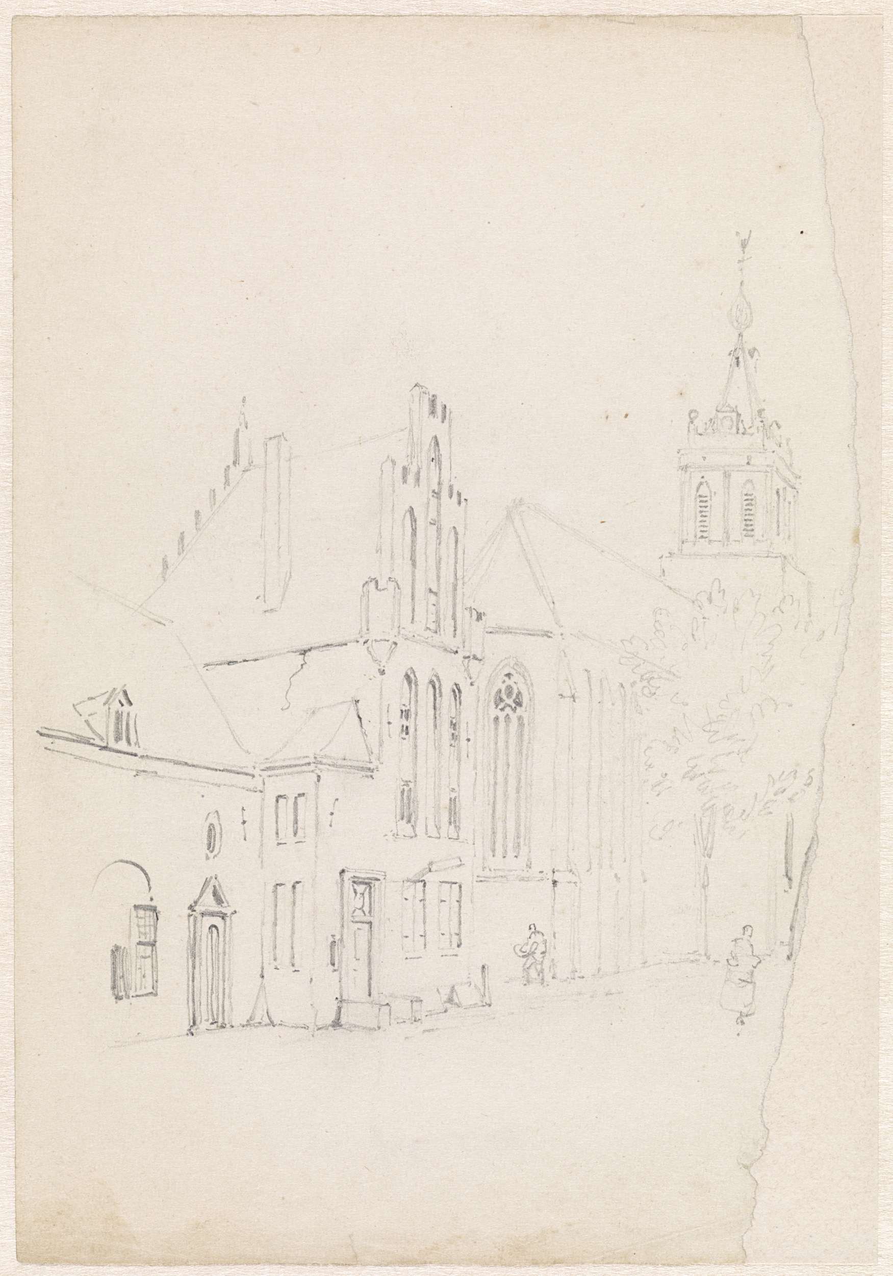 Gezicht op huizen aan de rand van Delft, rechts een ...