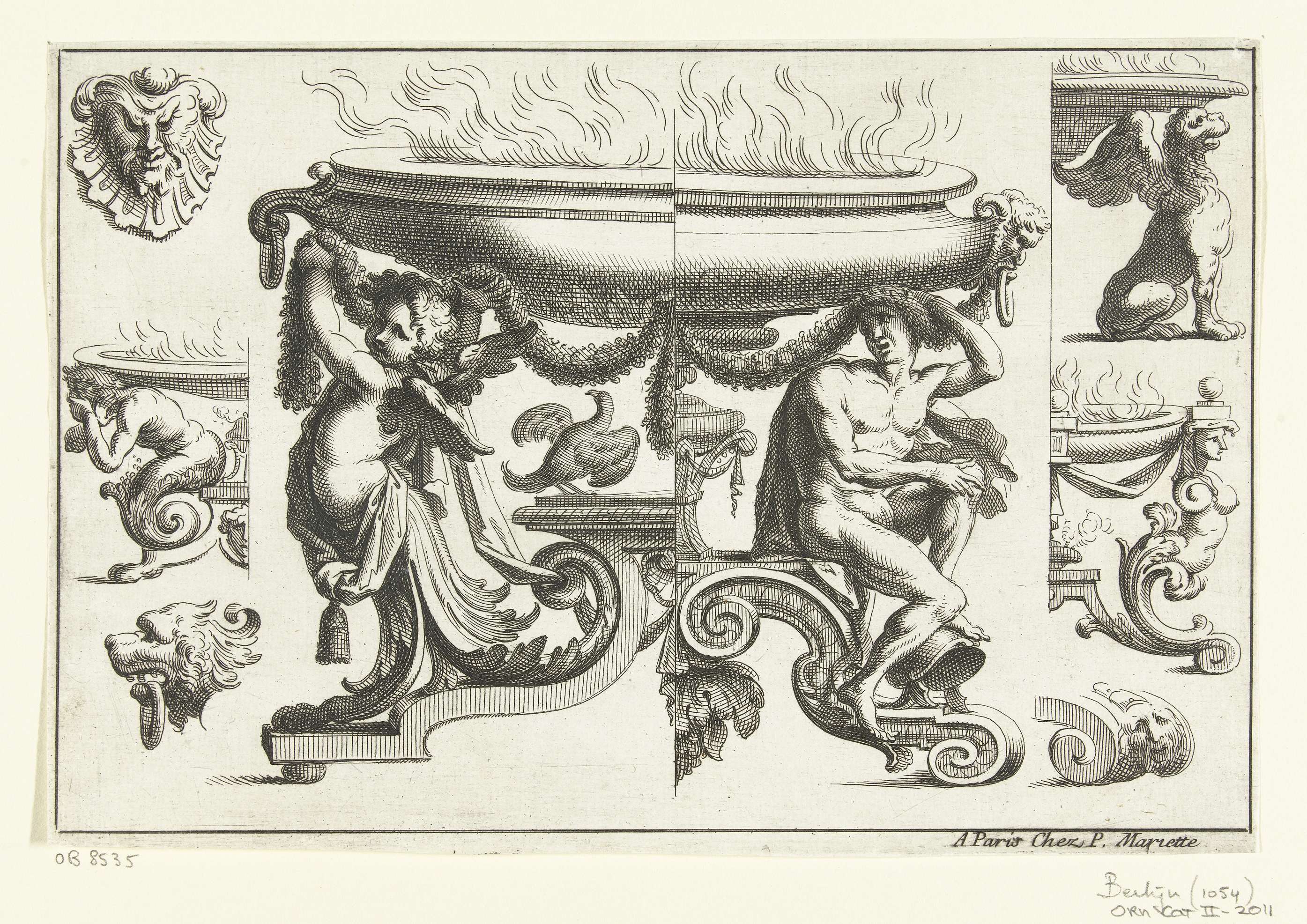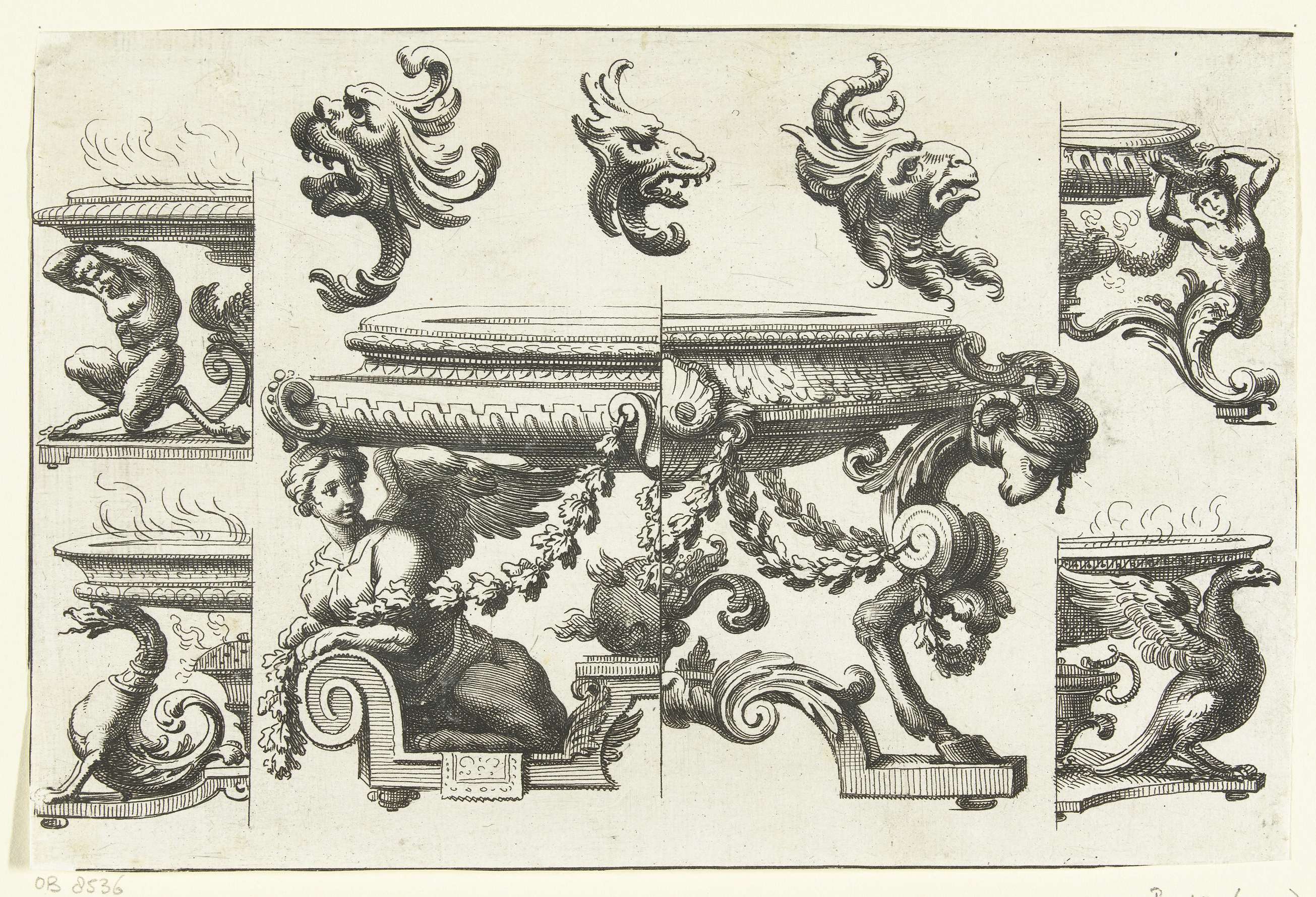 Sater, adelaar en twee putti tussen bladranken