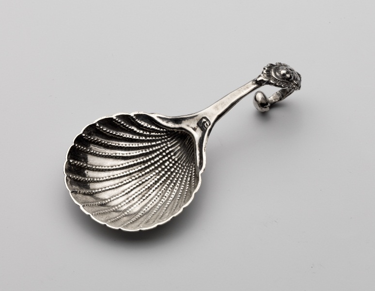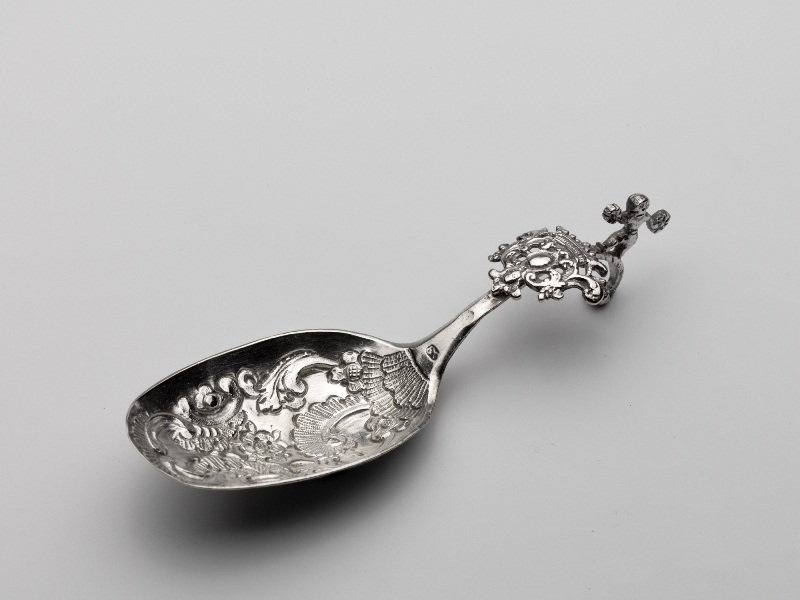 Lepel waarvan steel bovenaan omkrult in vorm van blo...