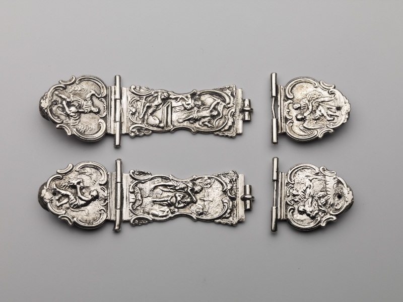 Twee boekklampen met bijbelse voorstellingen
