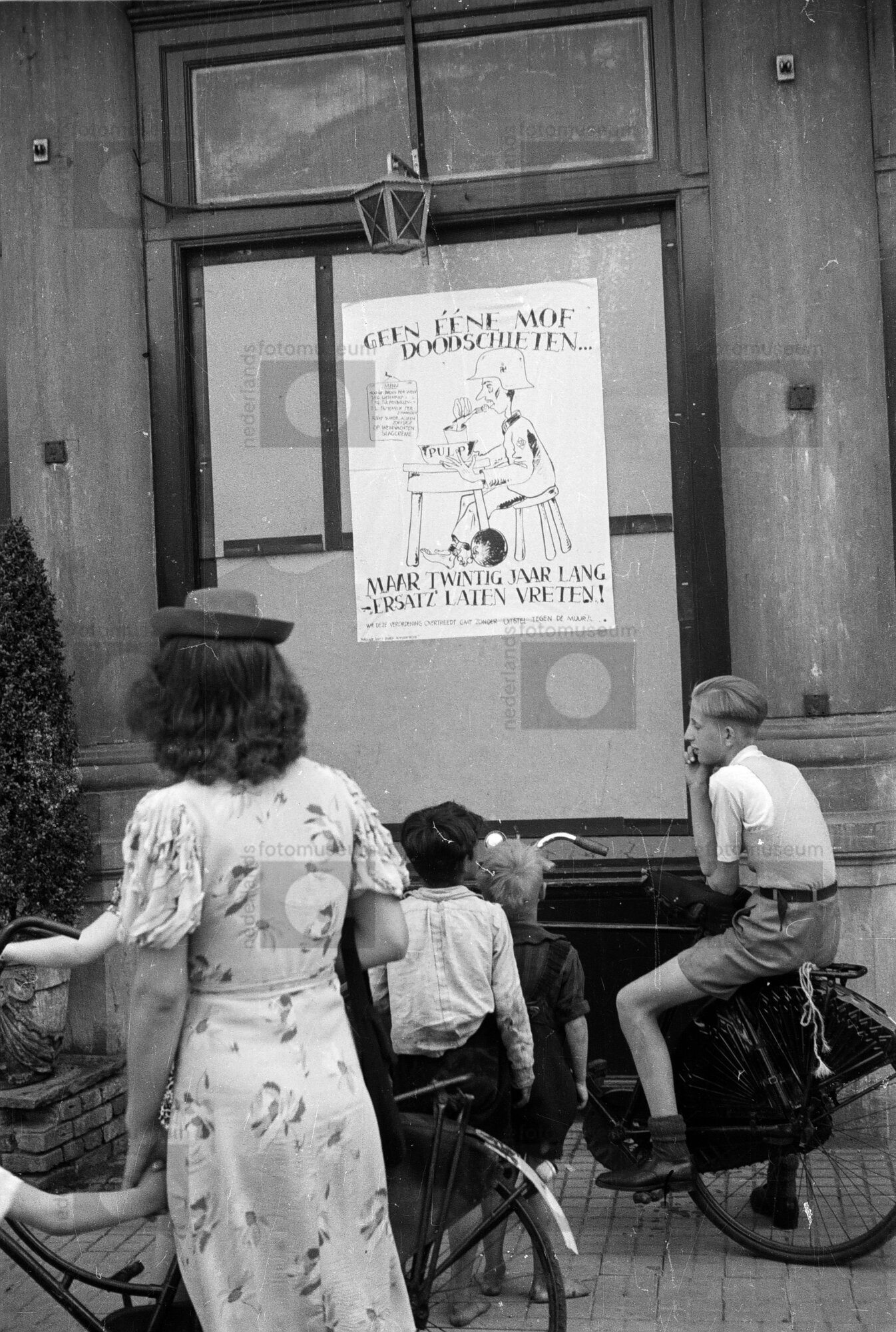 Spotprent op affiche, gericht tegen nazi's, in d...