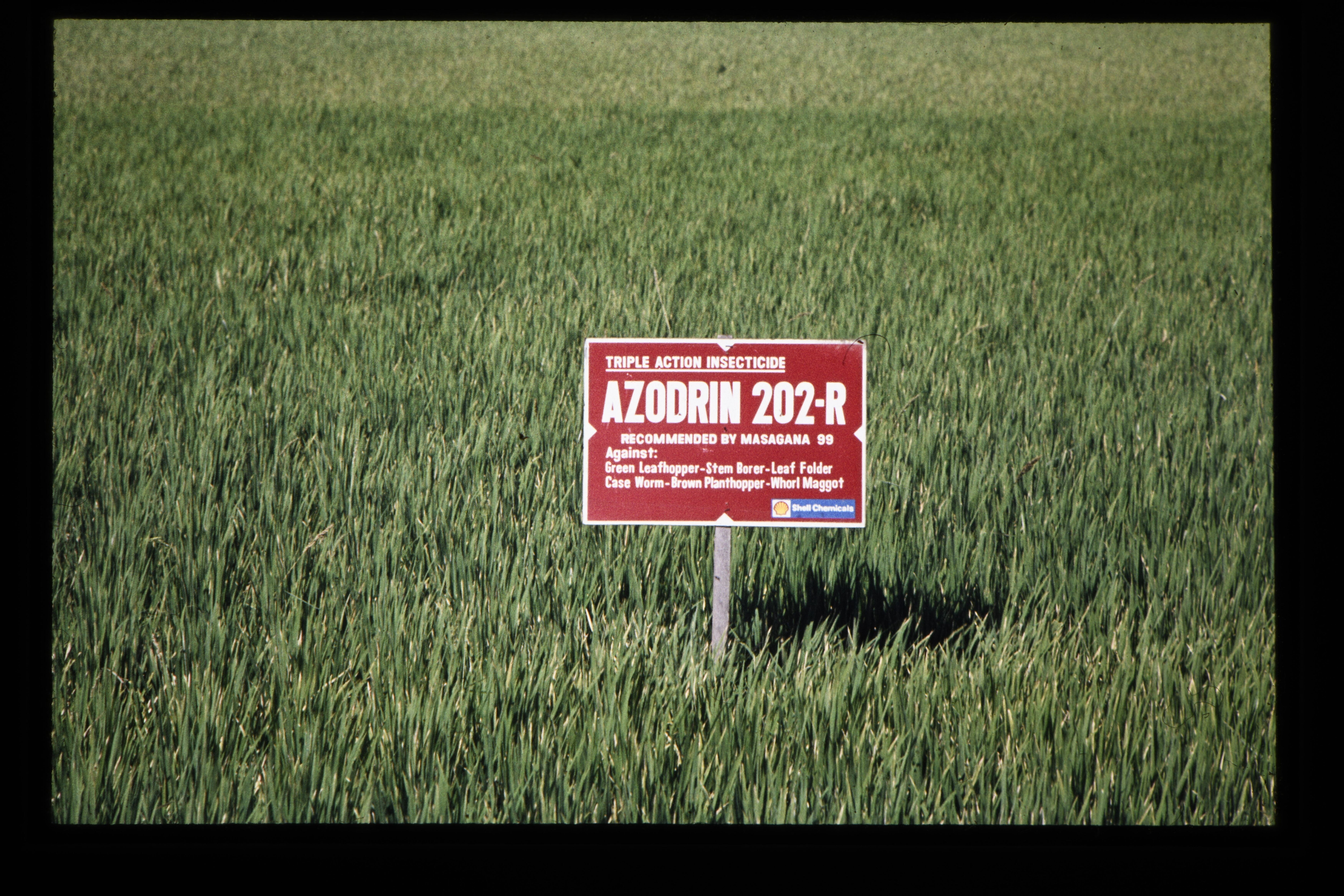 'Toepassing van insecticide in rijstveld Laguna prov...