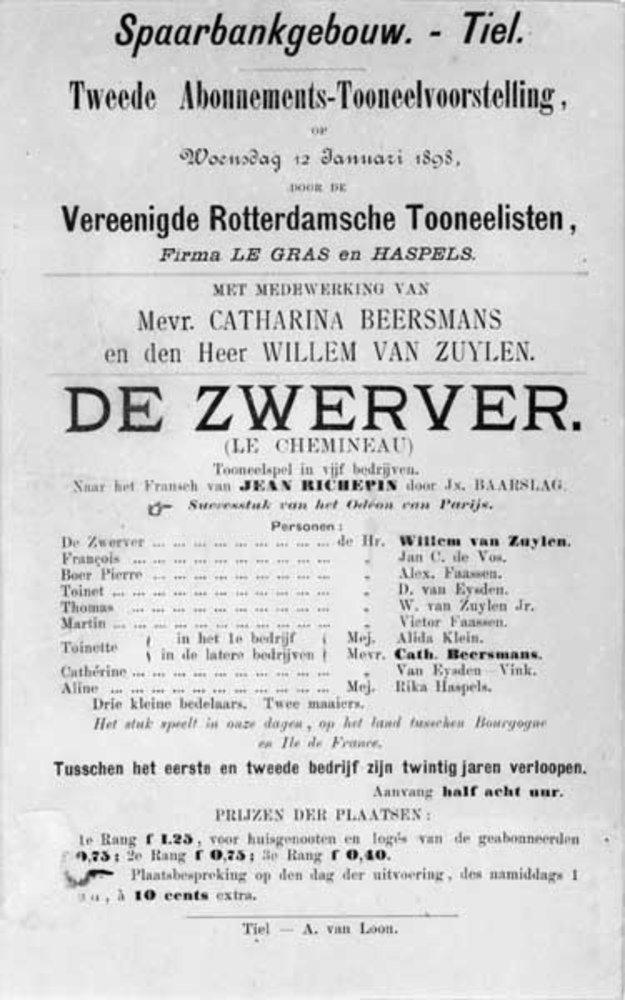 Affiche van de tweede abonnements-toneelvoorstelling...