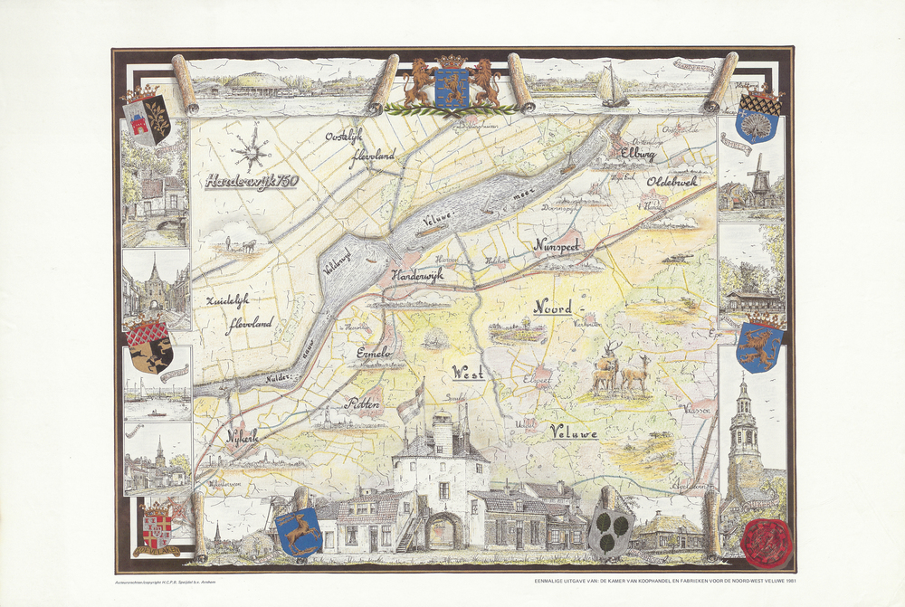 Kaart van de Noordwest-Veluwe, gedecoreerd met gemee...