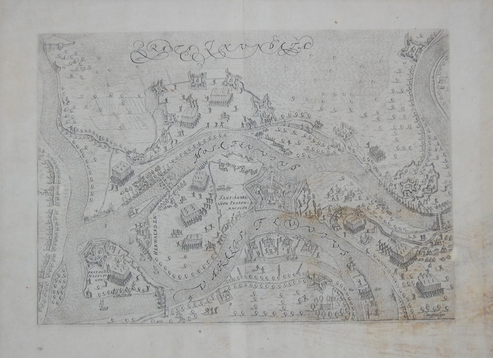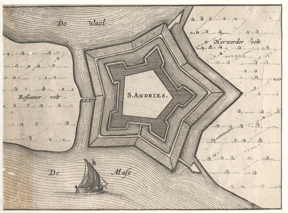 Plattegrond van vijfhoekig fort St. Andries tussen M...