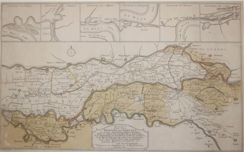 kaart met dijkdoorbraken in het jaar 1757 in het Kwa...