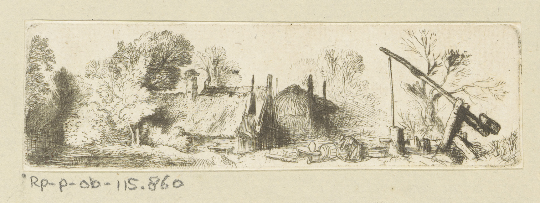 Landschap met put en boerderij