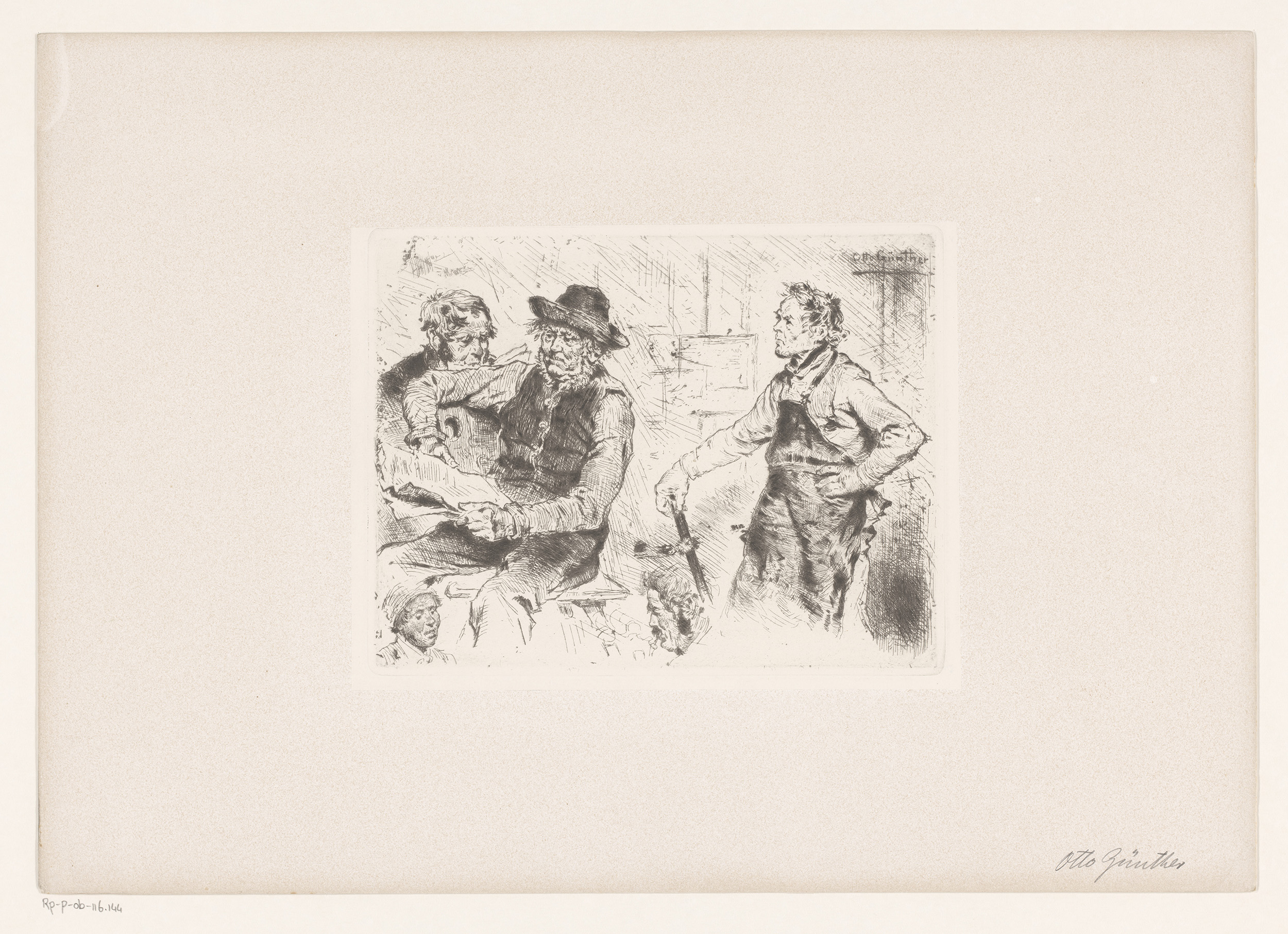 Studieblad met mannelijke figuren en hoofden