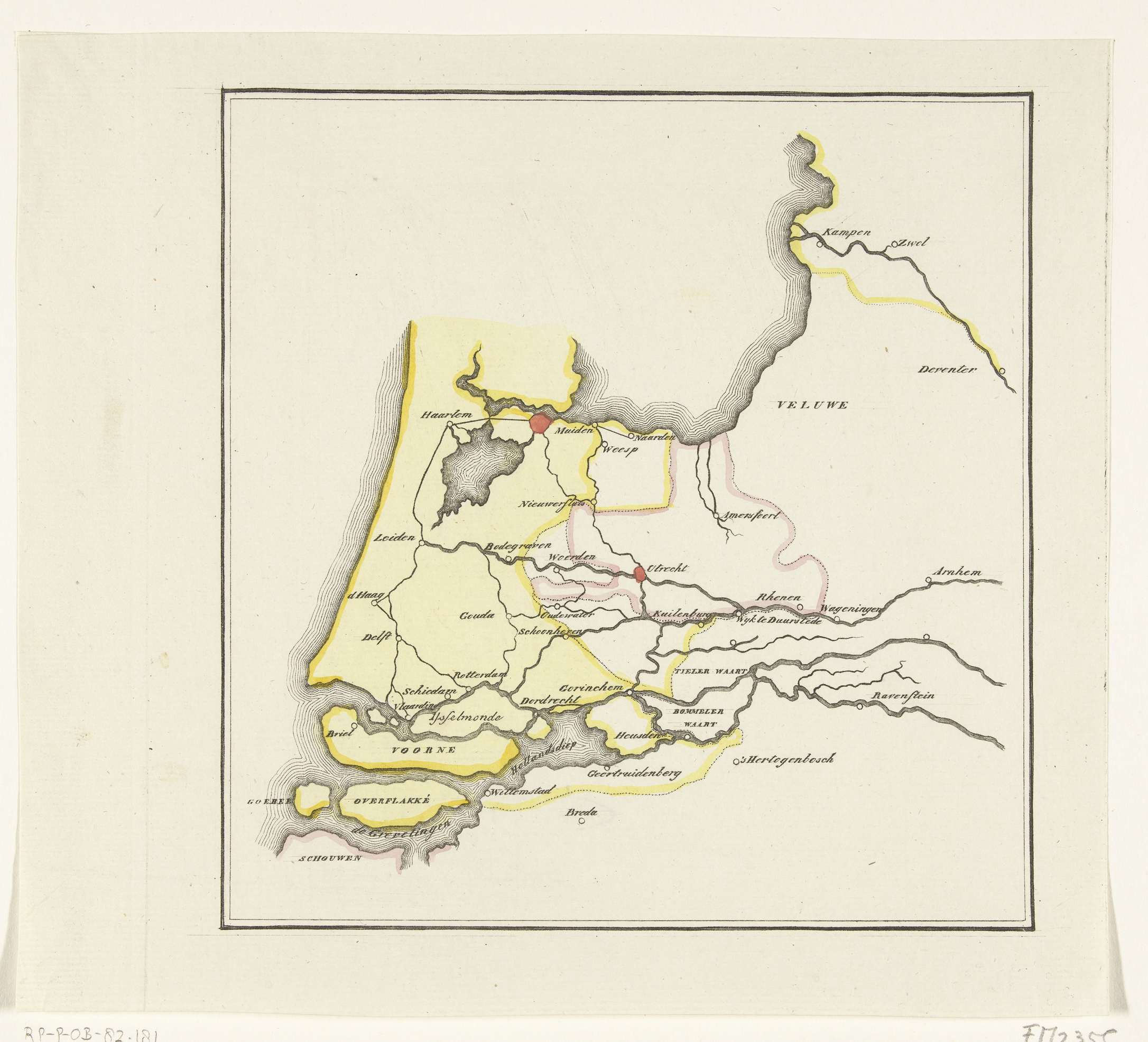 Kaart van de provincies Holland, Utrecht en Gelderla...