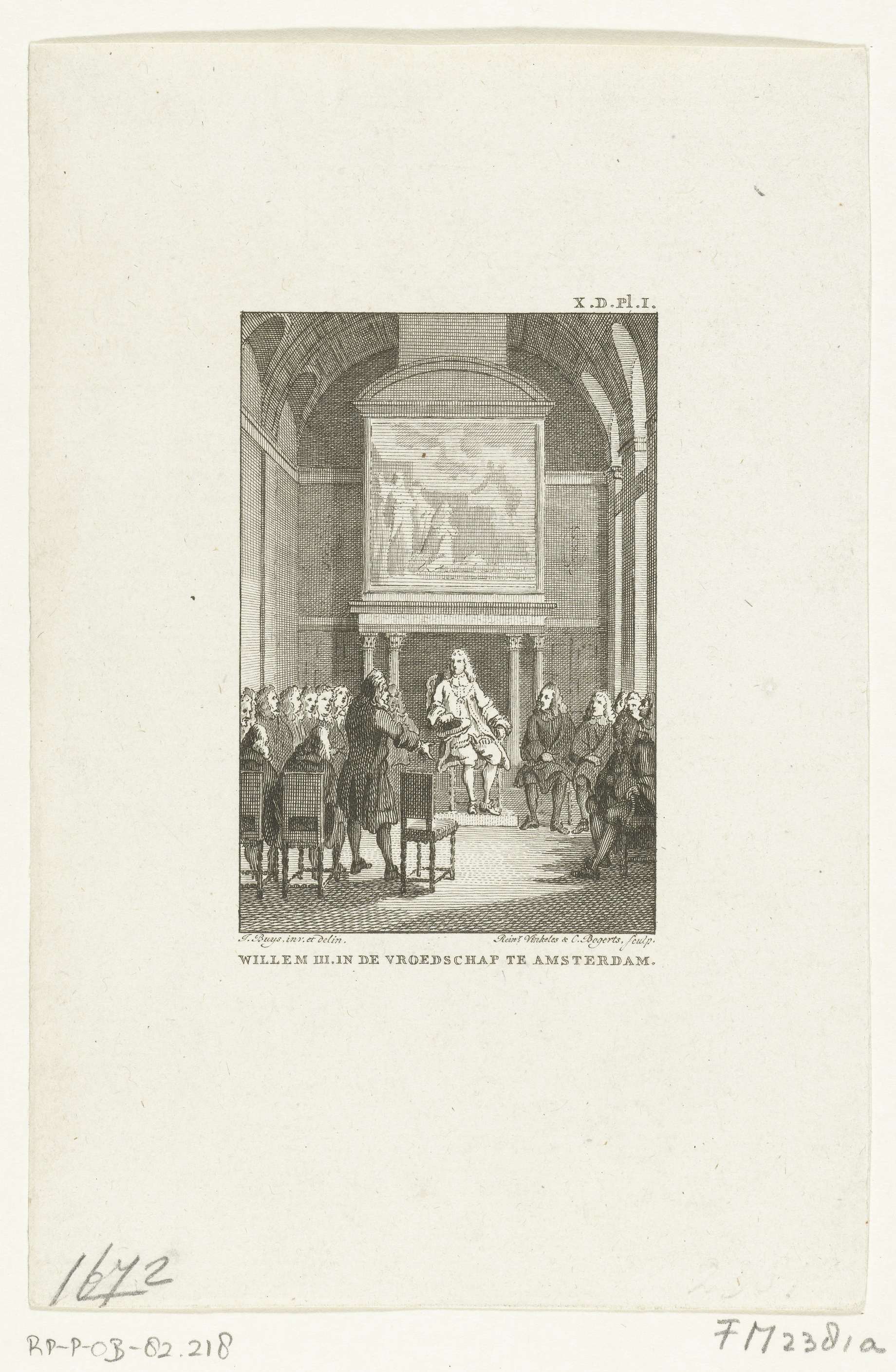 Prins Willem III ontvangen in de vroedschap te Amste...