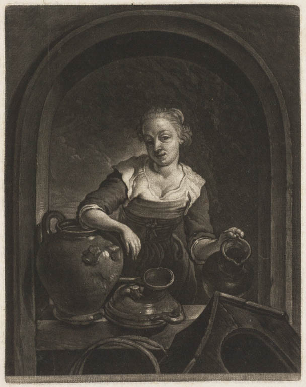 Meisje met een waterkruik in een nis